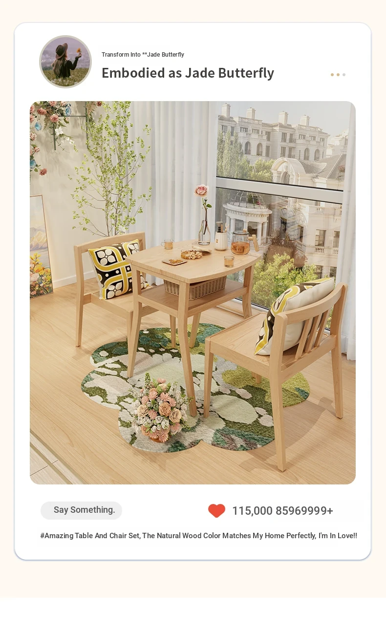 [Imported Solid Wood] One Table Two Chairs - Peach Color