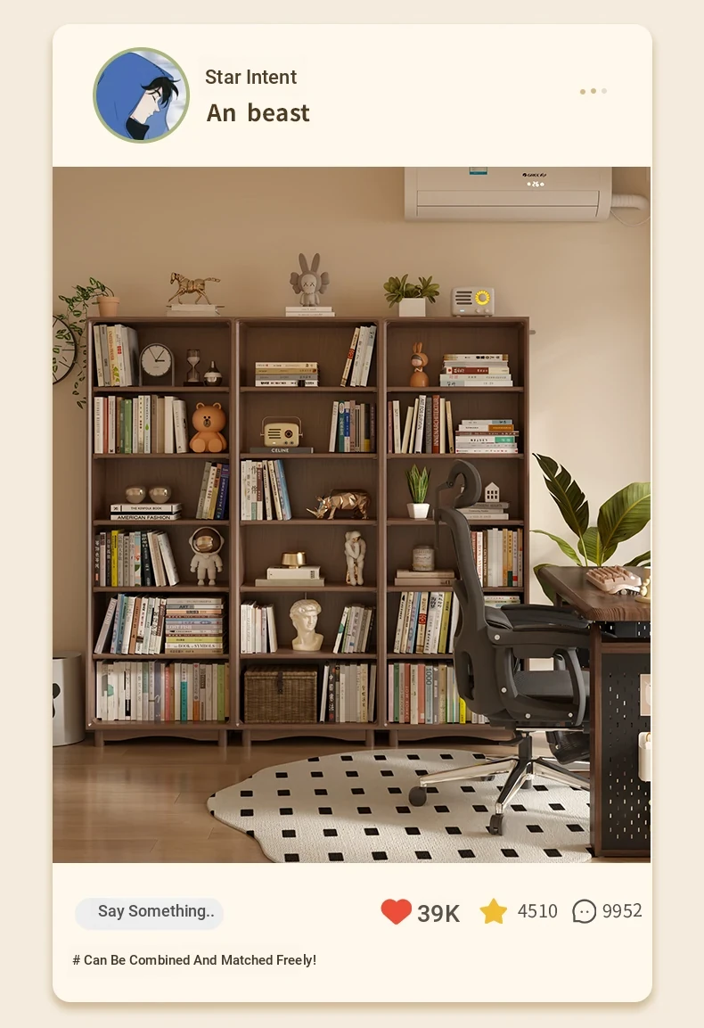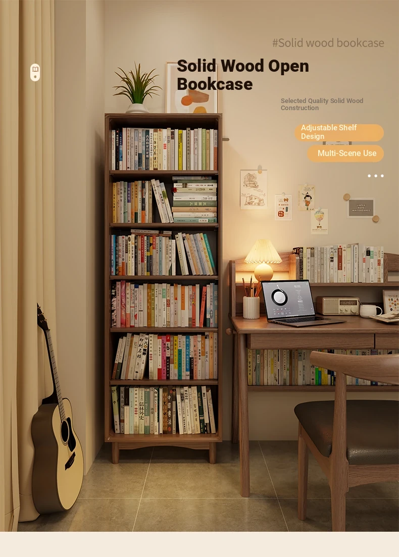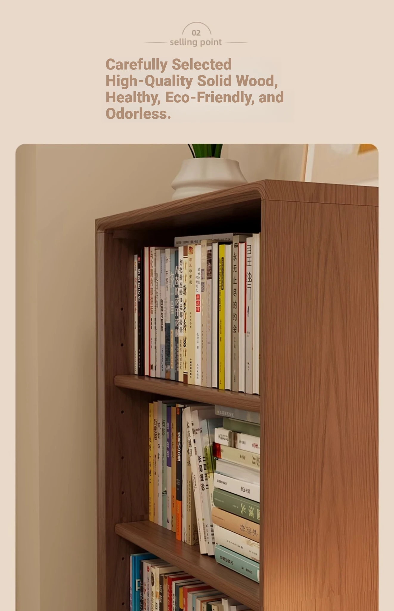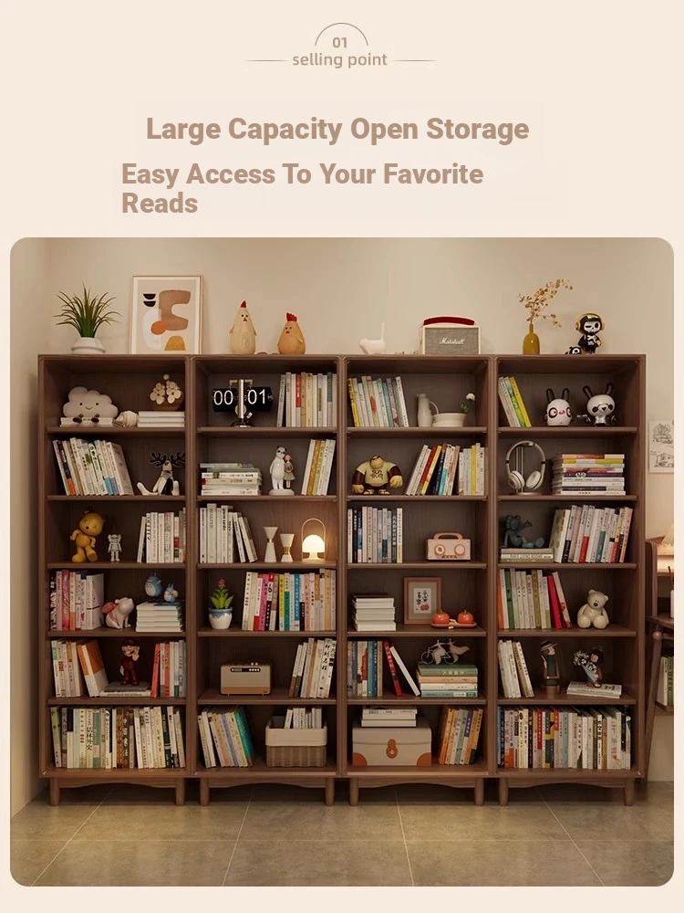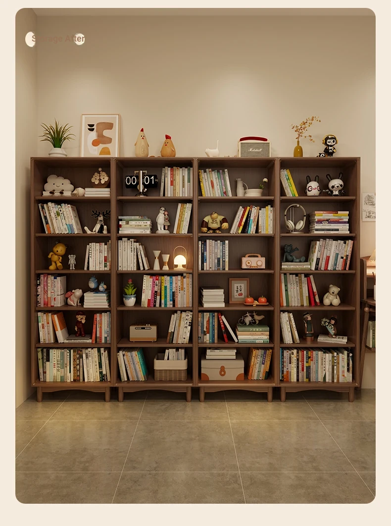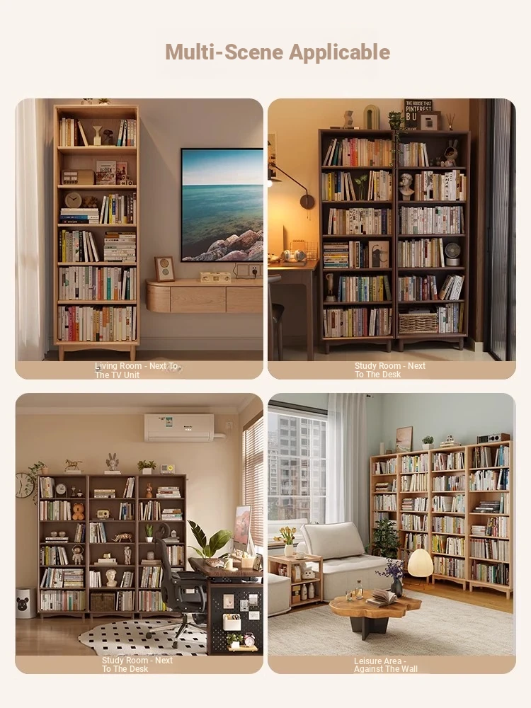 "Elegant Solid Wood Bookshelf - Modern Multi-Functional Floor-to-Wall Storage Cabinet for Living Room - Stylish Display Rack and Bookcase Combination"
