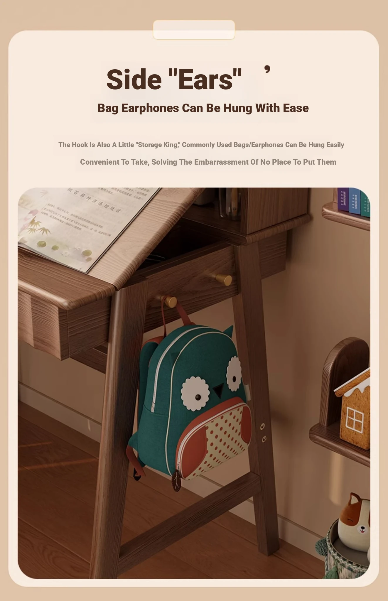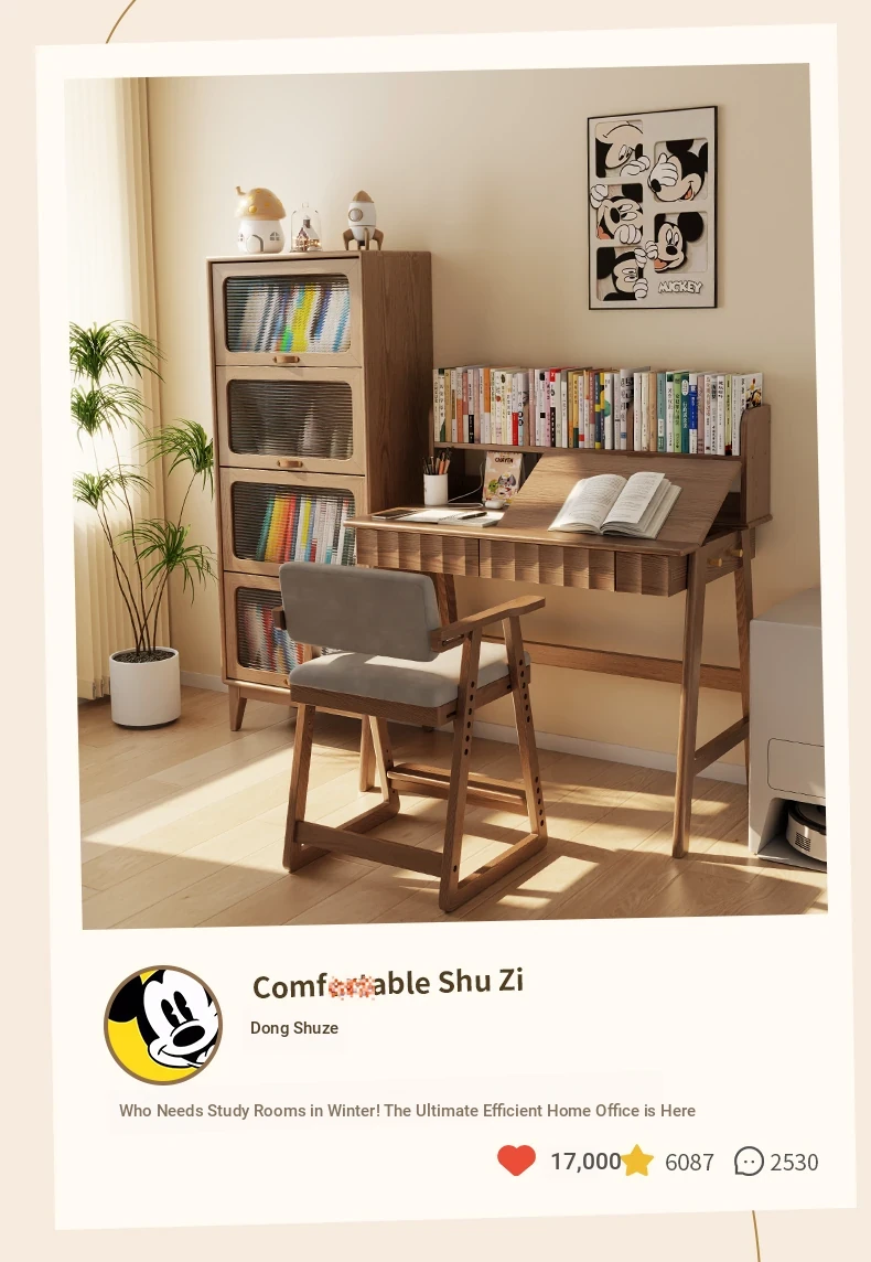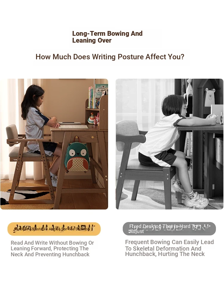 [Solid Wood] Left Turn Desk + Bookshelf 47.24in + Learning Chair-Log Color