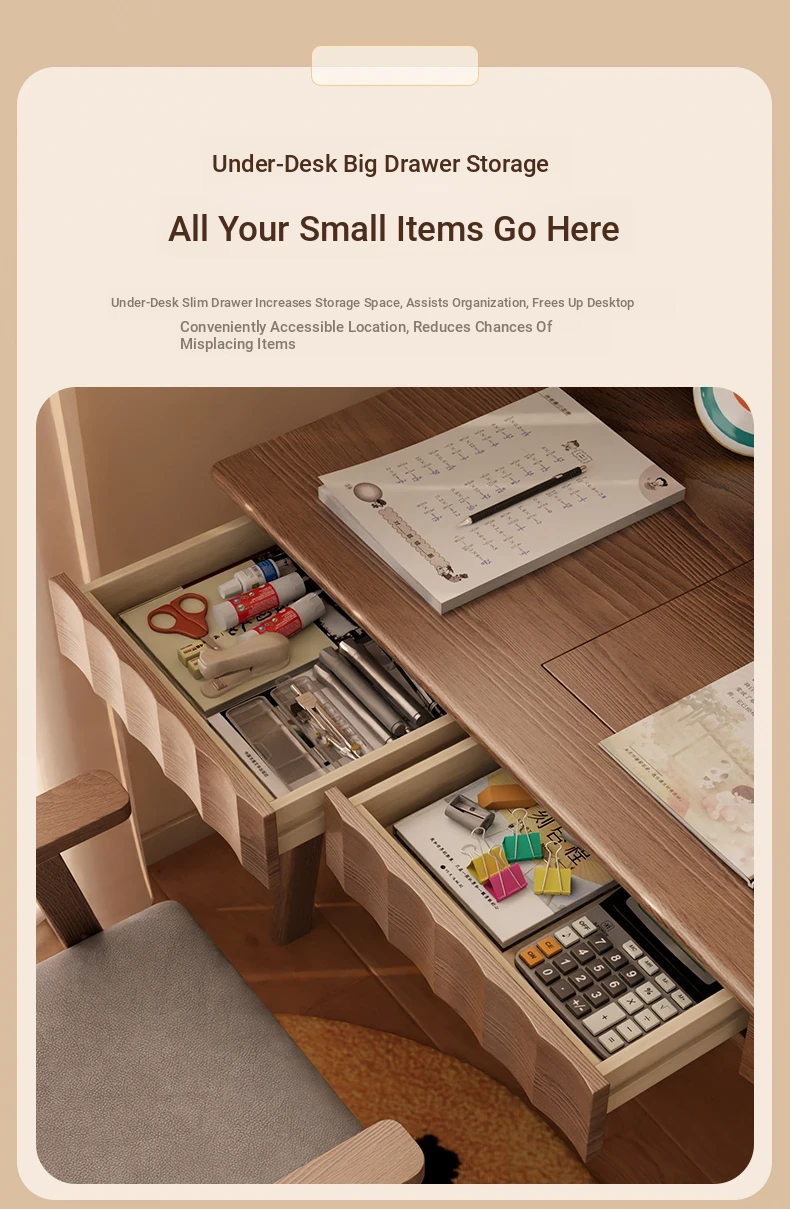 [Solid Wood] Left Turn Desk Without Bookshelf 47.24in + Learning Chair-Log Color