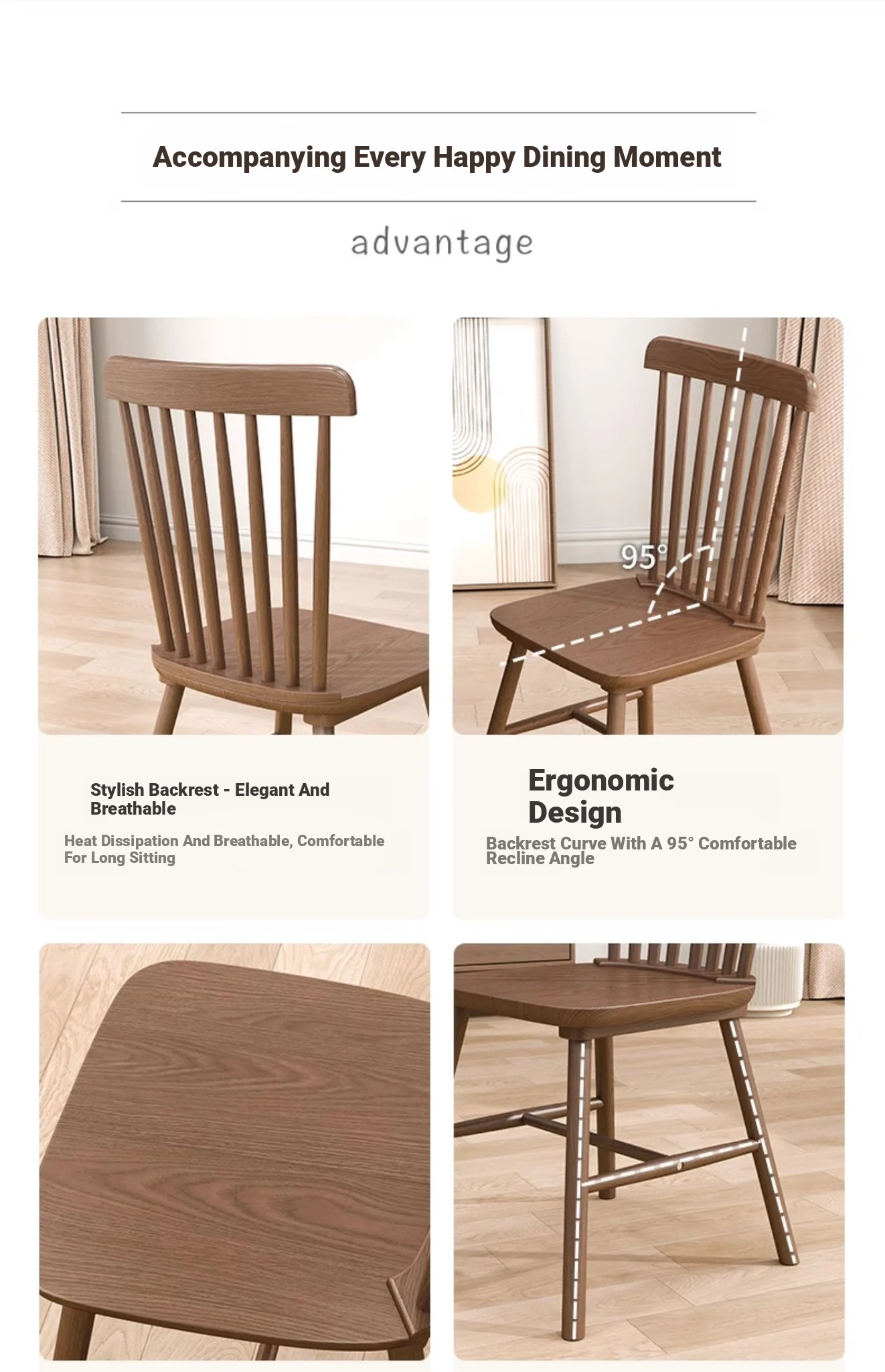 Elegant Solid Wood Dining Chair with Backrest - Modern Minimalist Design for Small Spaces, Perfect for Restaurants and Homes. Trendy Windsor Style Dining Seats!