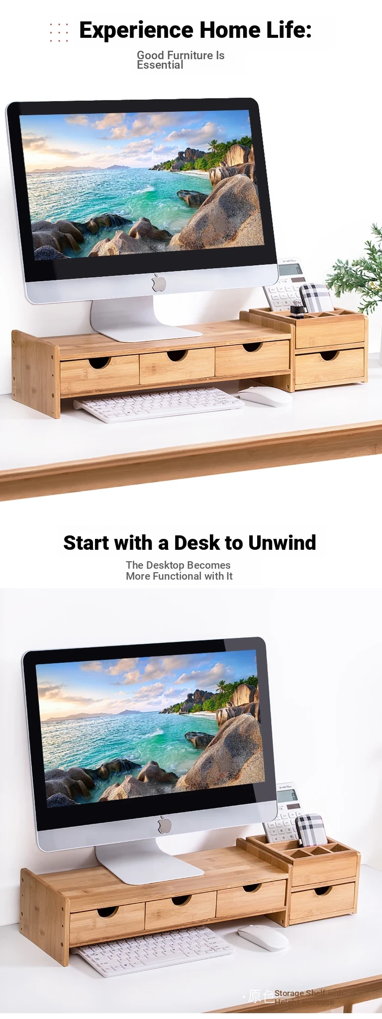 Elevated Wooden Monitor Stand with Neck Support - Office Desk Organizer for Desktop Storage and Efficient Workspace Setup