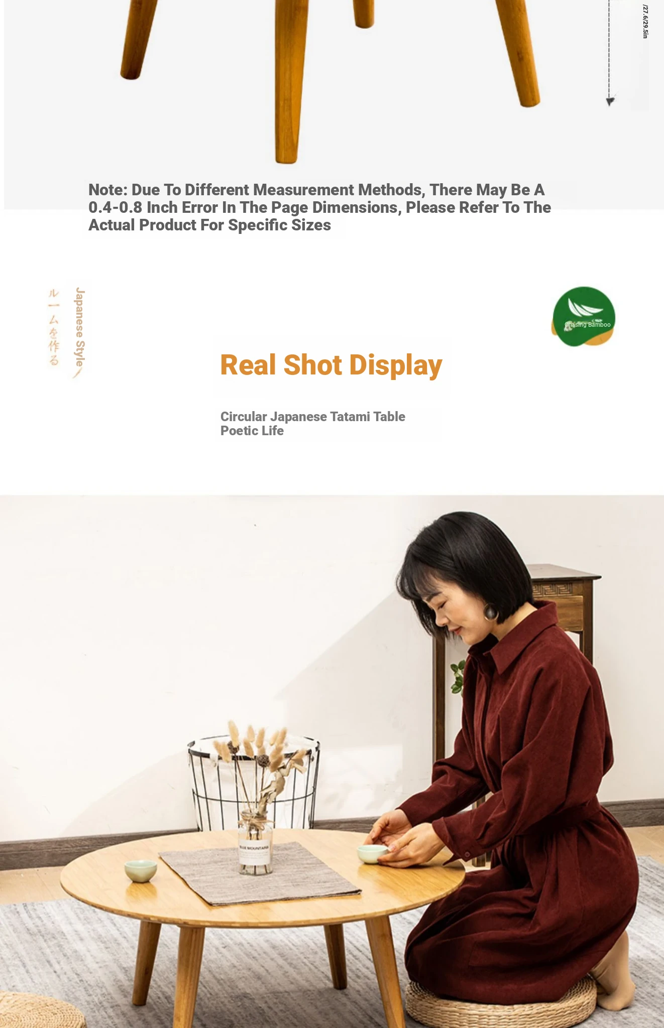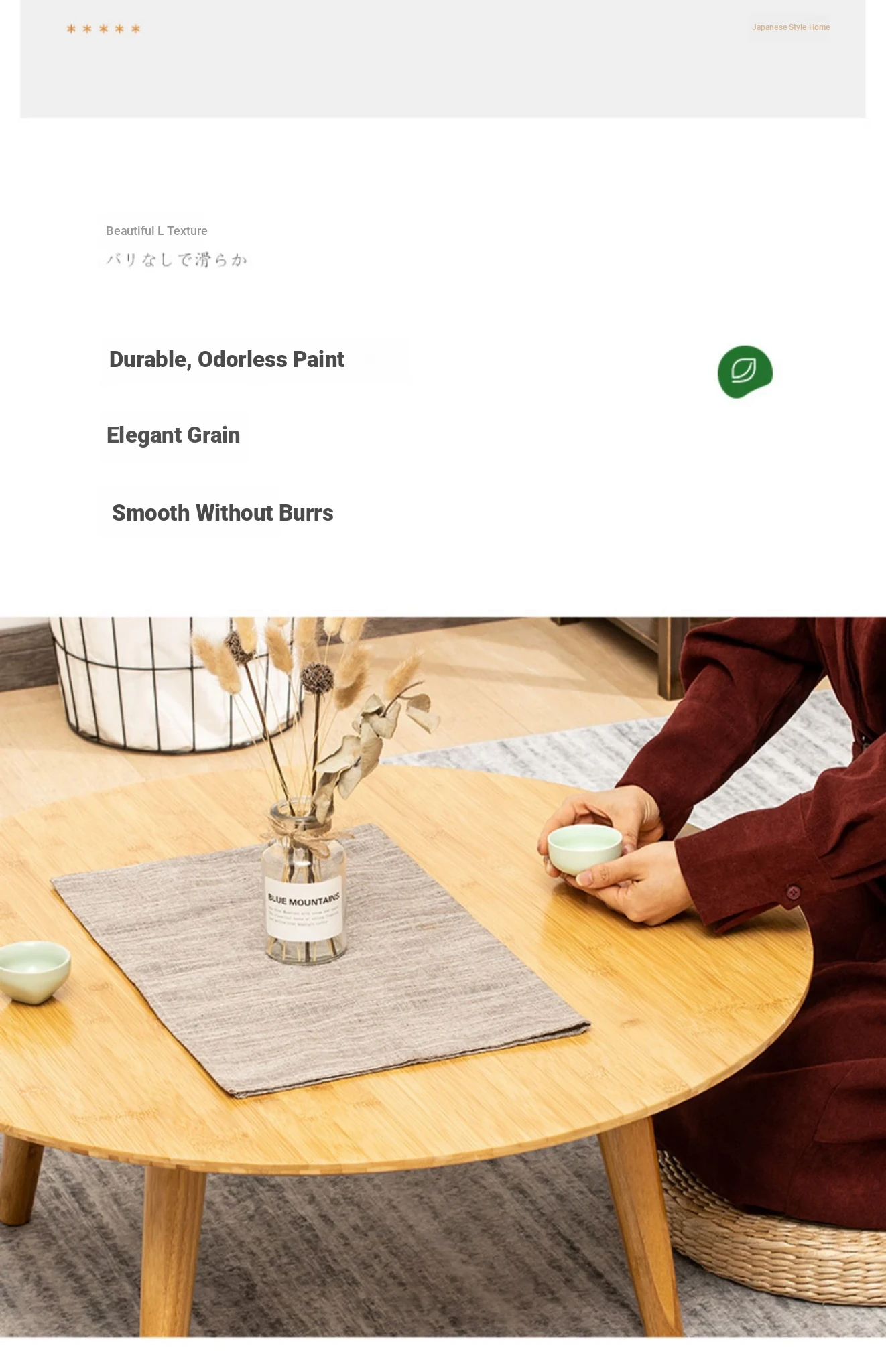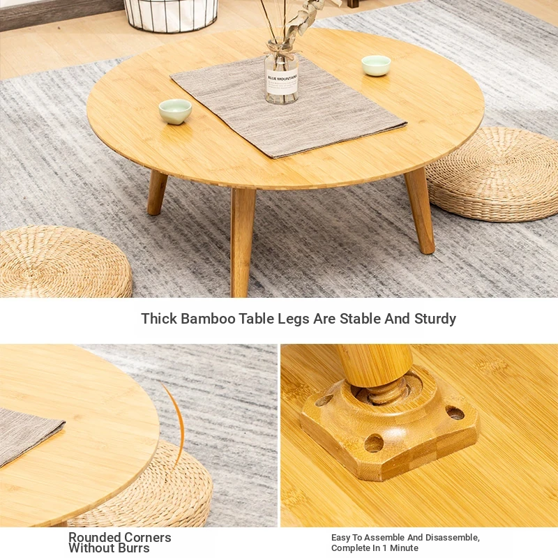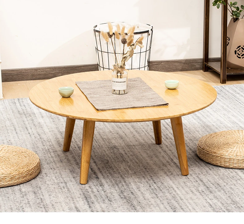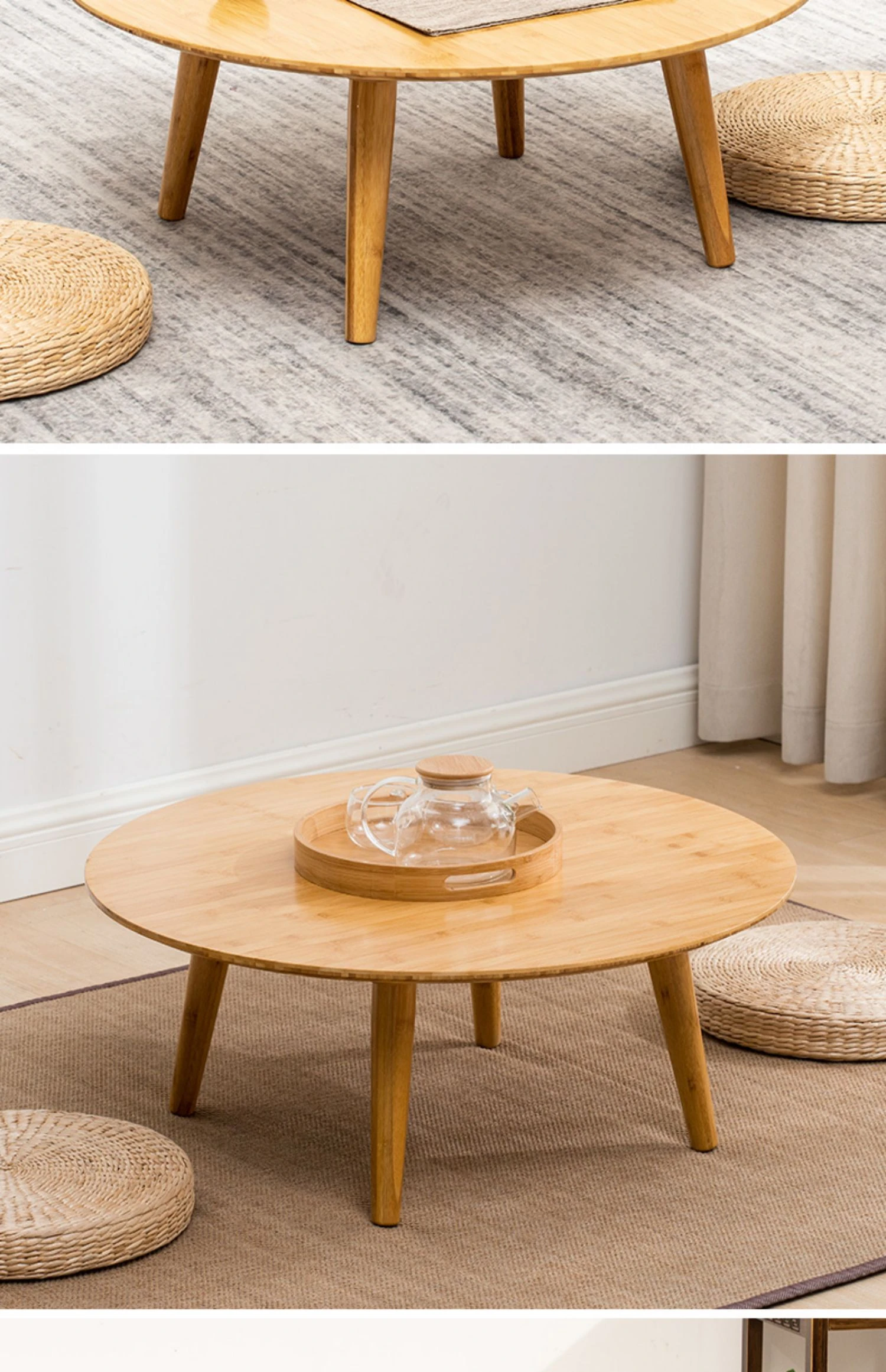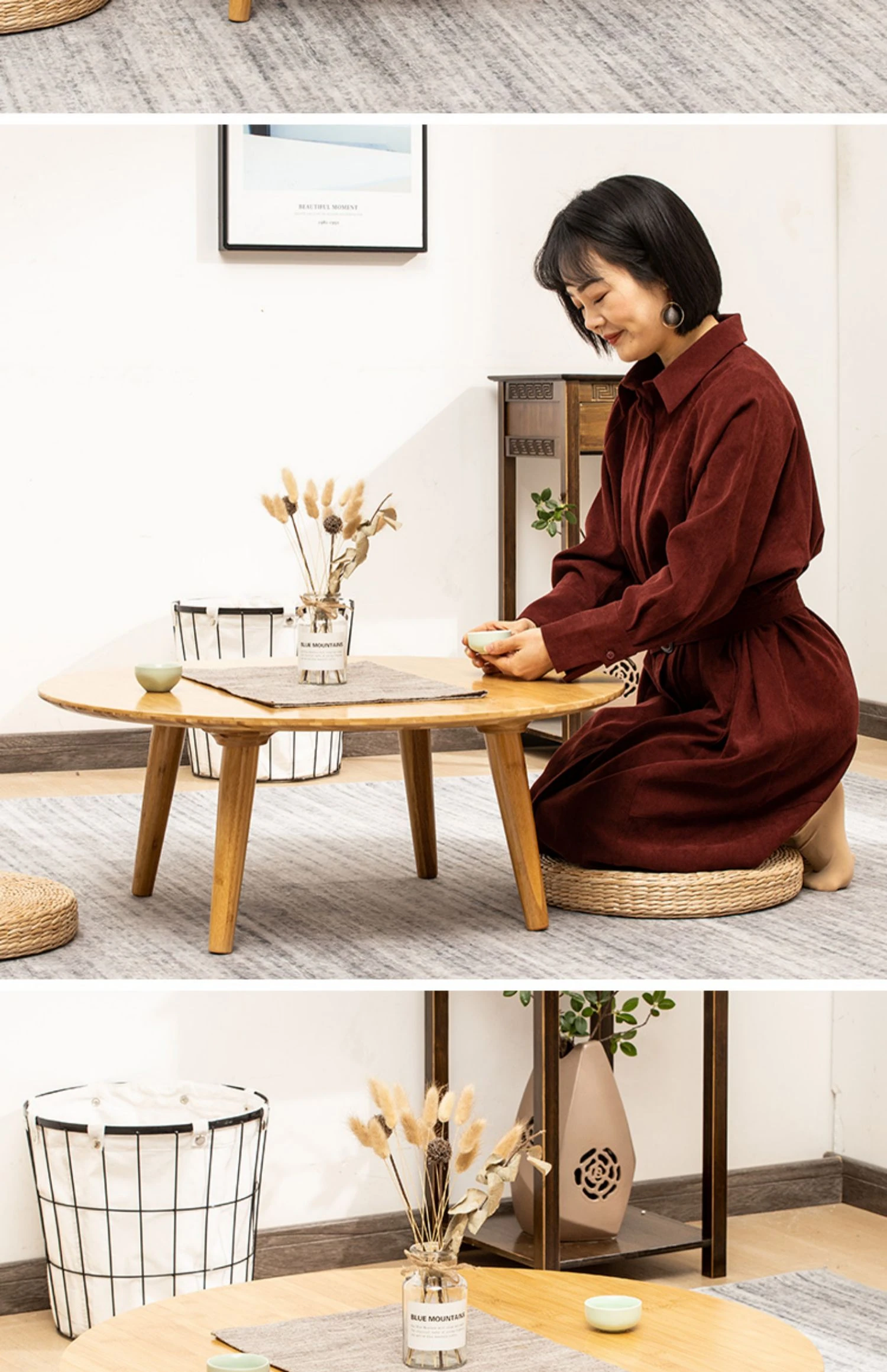 Japanese-style Low Table for Home Use – Solid Wood Tatami Desk, Round Minimalist Design, Ideal for Learning and Cozy Window Nooks, Perfect Small Tea Table