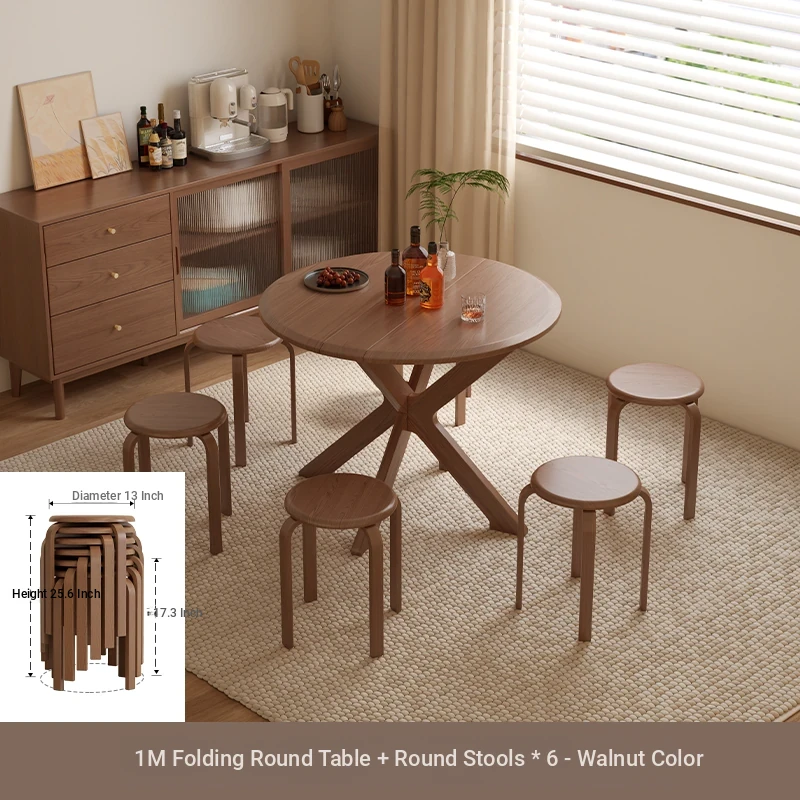 39.37in Foldable Round Table + Stacked Stool (Four Stool)-Walnut Color(Whole shipment)
