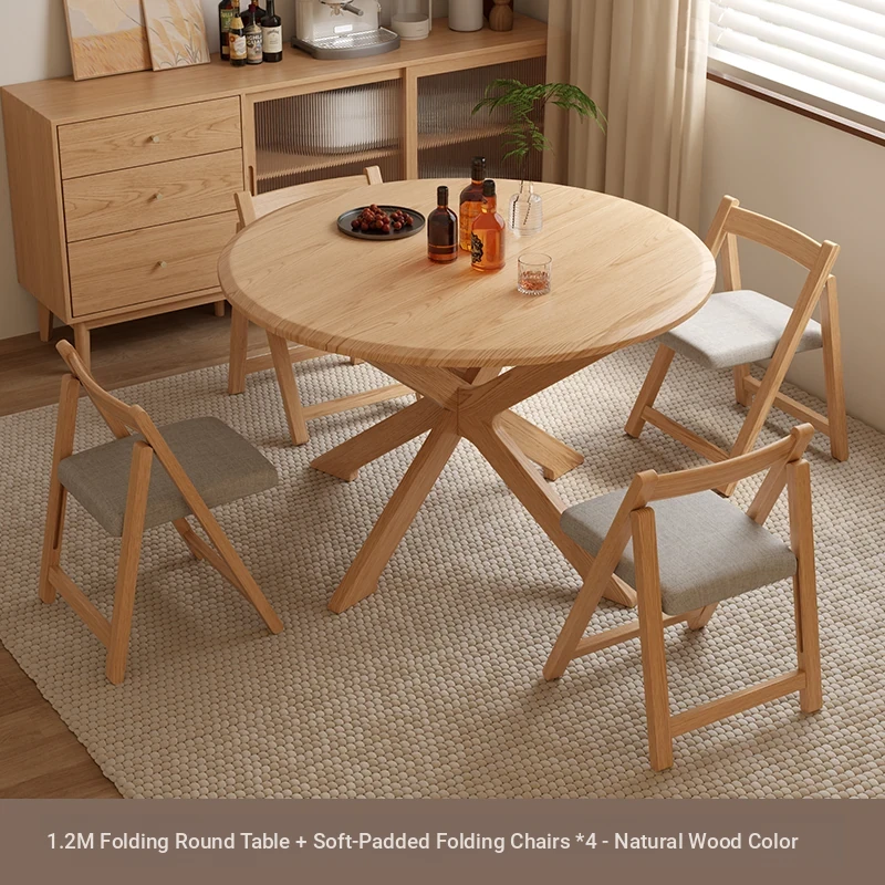 [All Solid Wood] 47.24in Foldable Round Table-Log Color(Whole shipment)