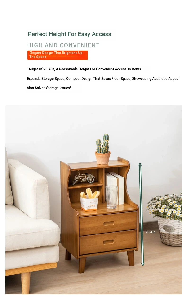 "Modern Minimalist Small Solid Wood Nightstand - Multi-Functional Bedroom Storage Cabinet for Convenient Bedside Organization"