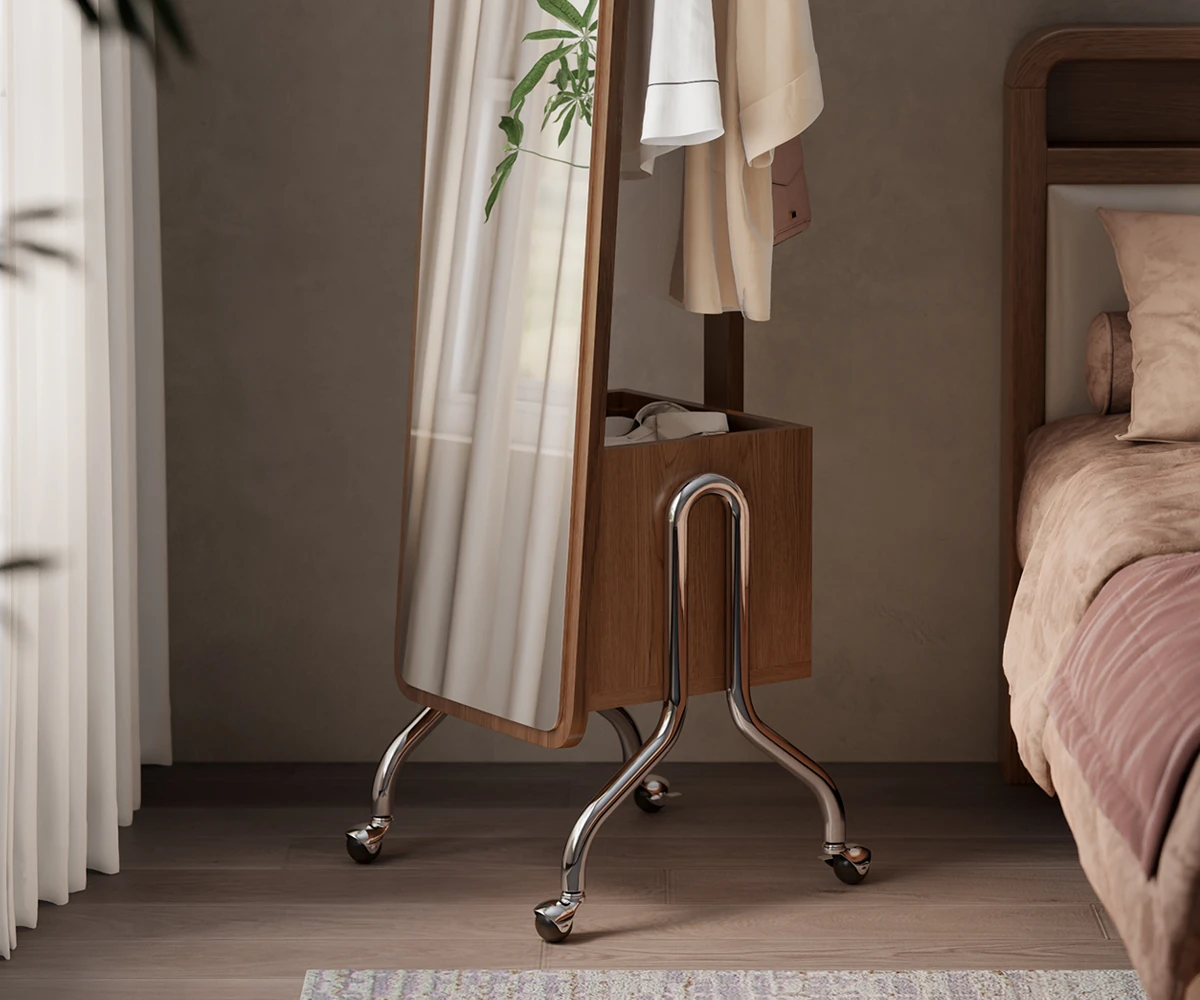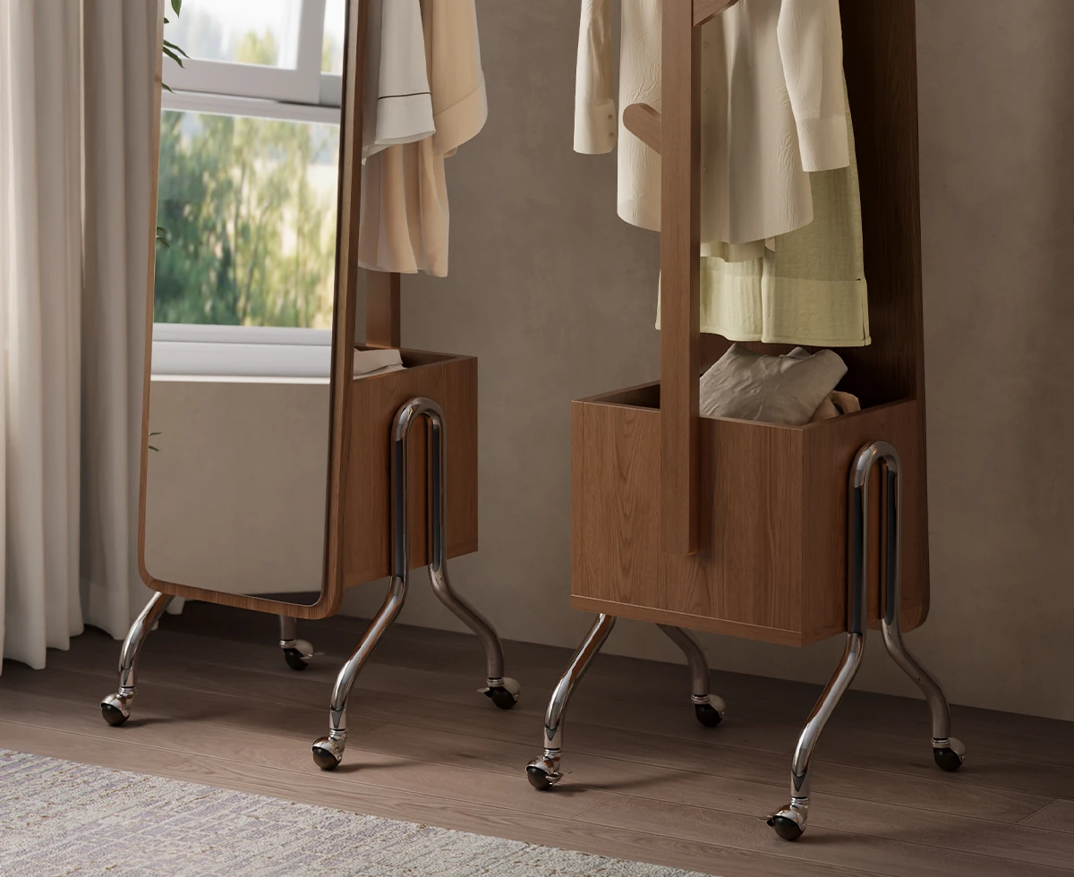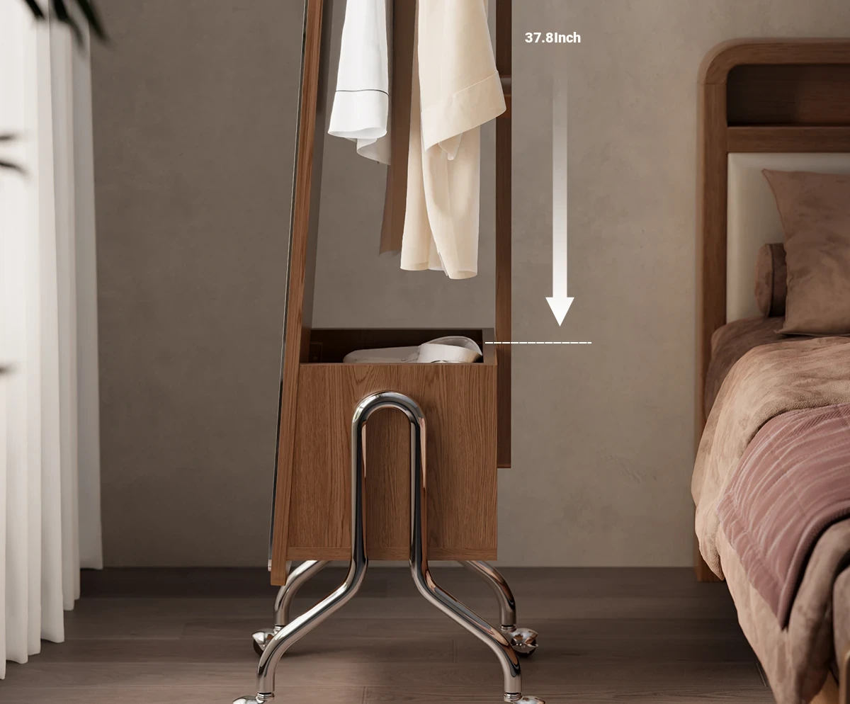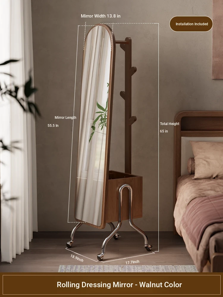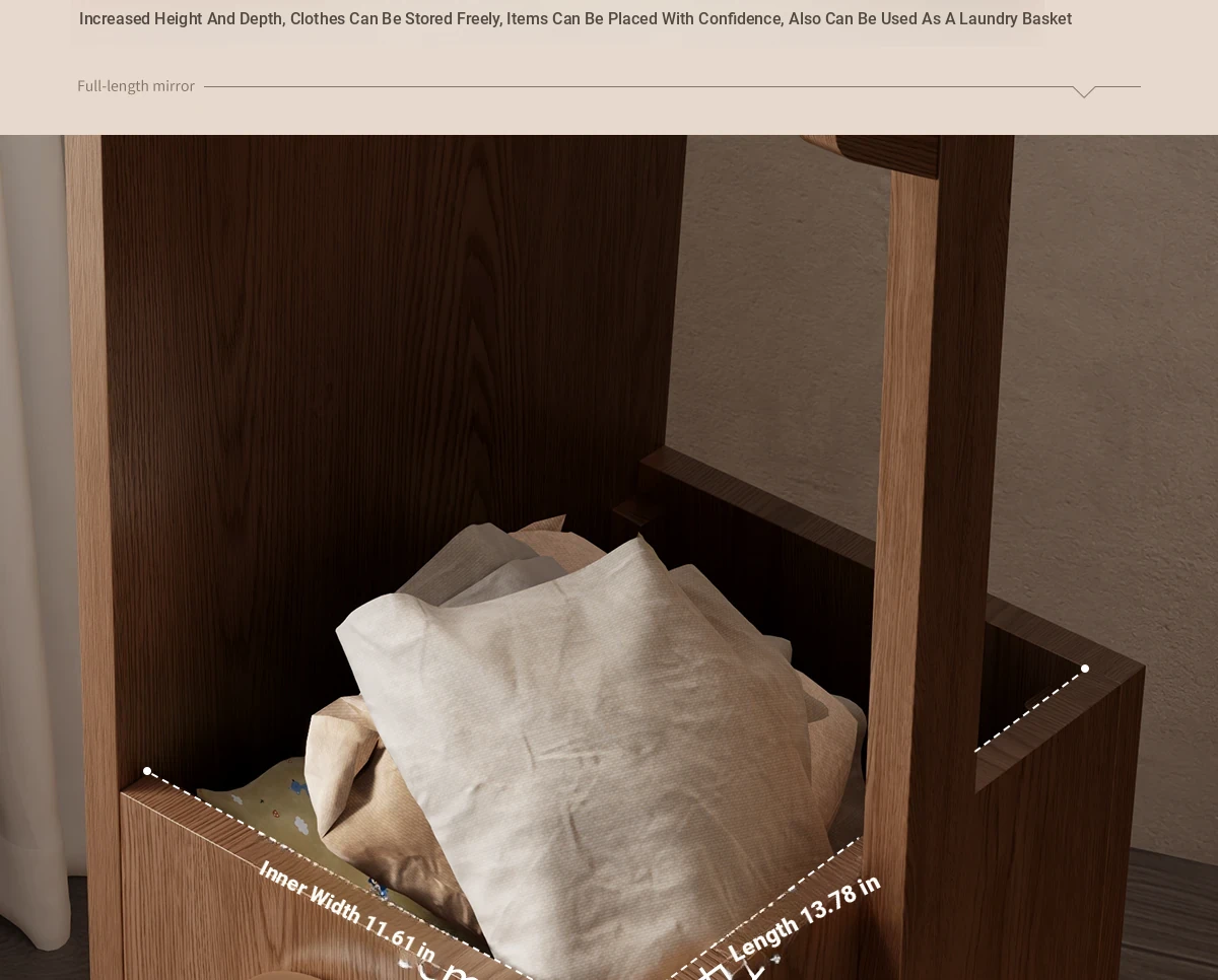 Dirty clothes basket dressing mirror-walnut(Package Installation)