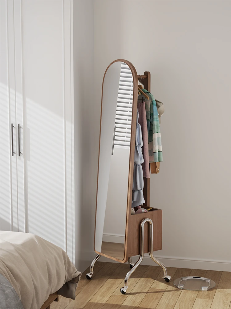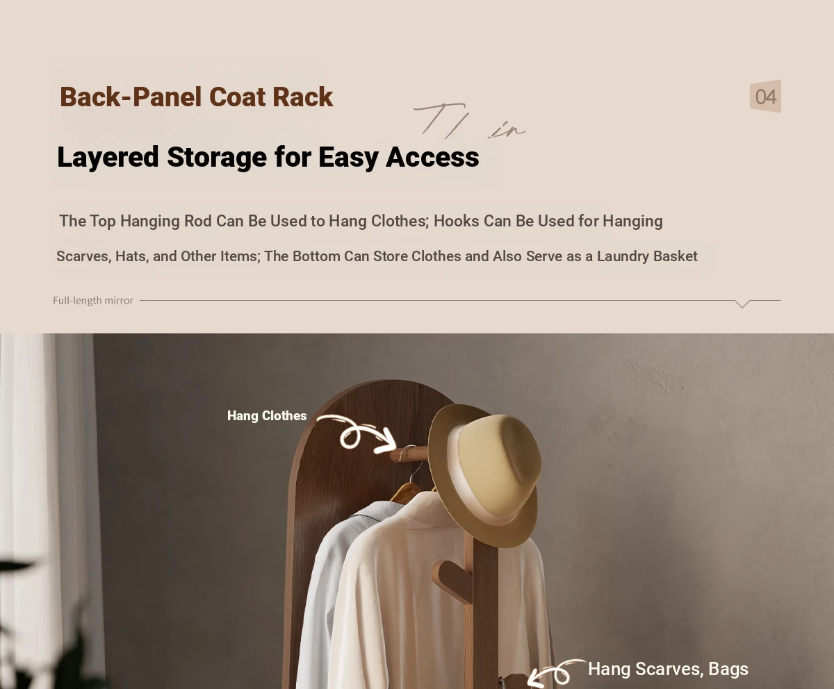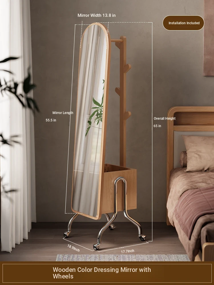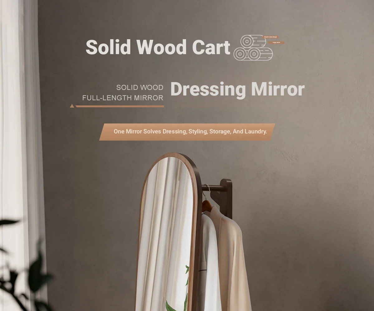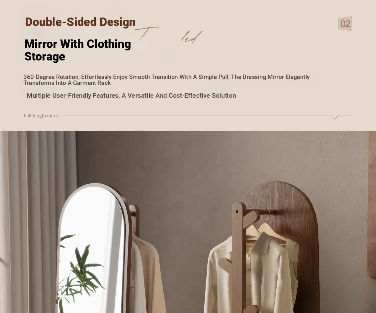 Multi-functional Rotating Dress Mirror with Movable Clothes Rack - Full-Length Mirror and Hanger for Women's Bedroom, Perfect for Home Use