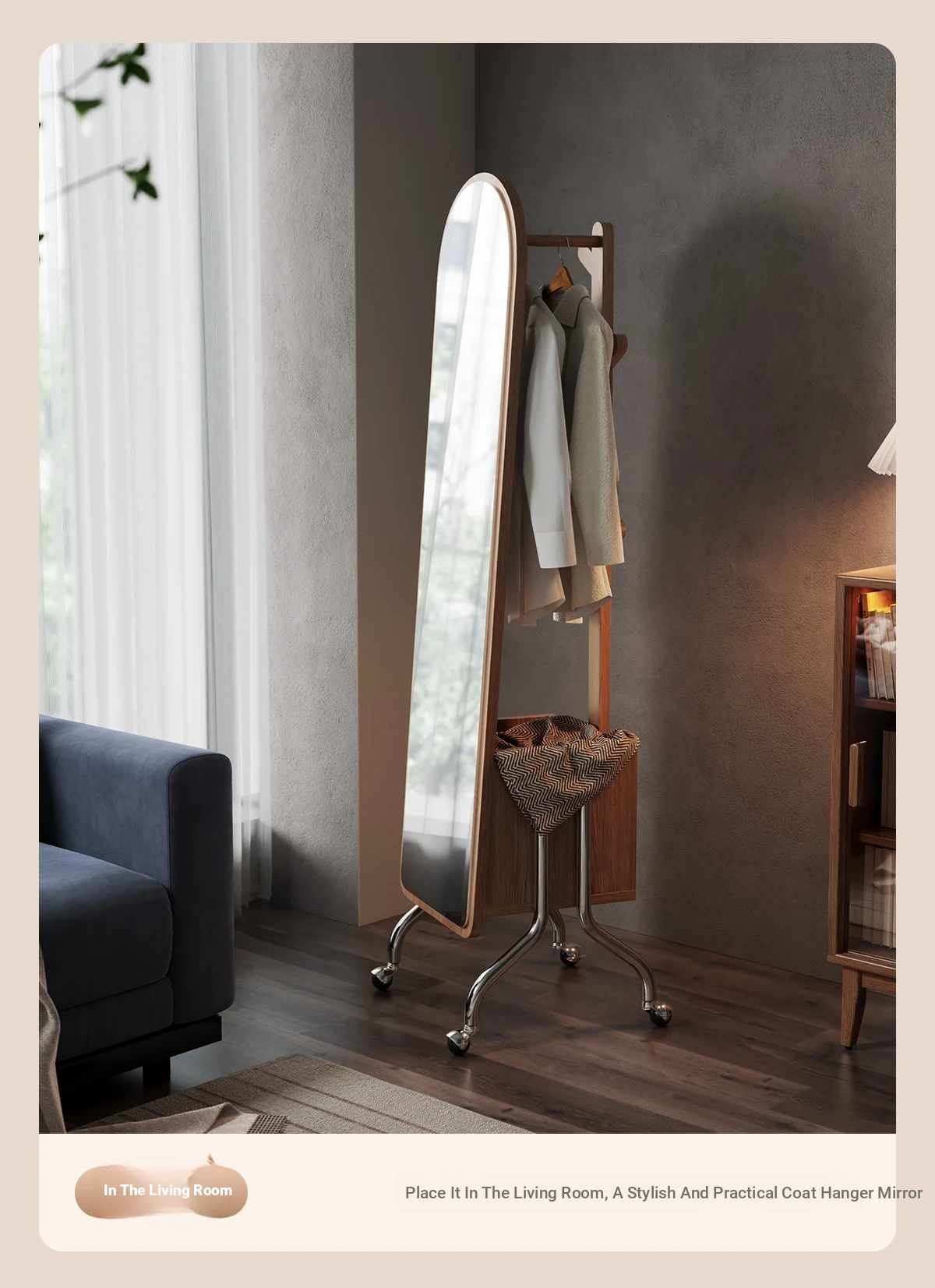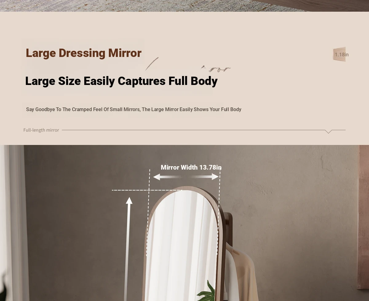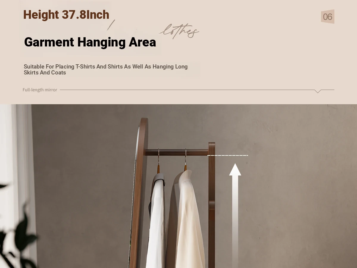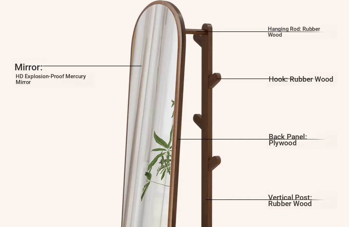 Multi-functional Rotating Dress Mirror with Movable Clothes Rack - Full-Length Mirror and Hanger for Women's Bedroom, Perfect for Home Use