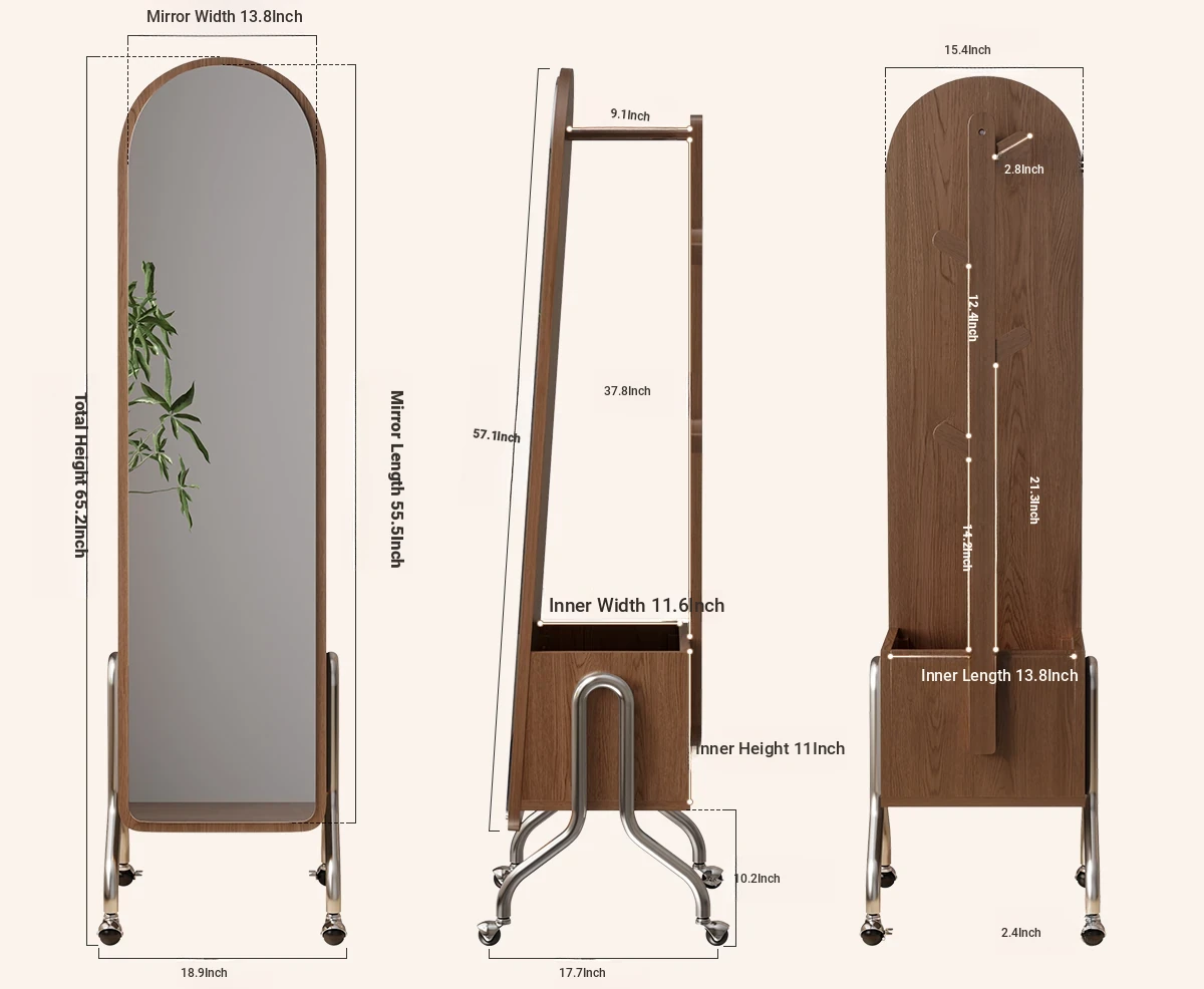 Dirty clothes basket dressing mirror-log color(Package Installation)