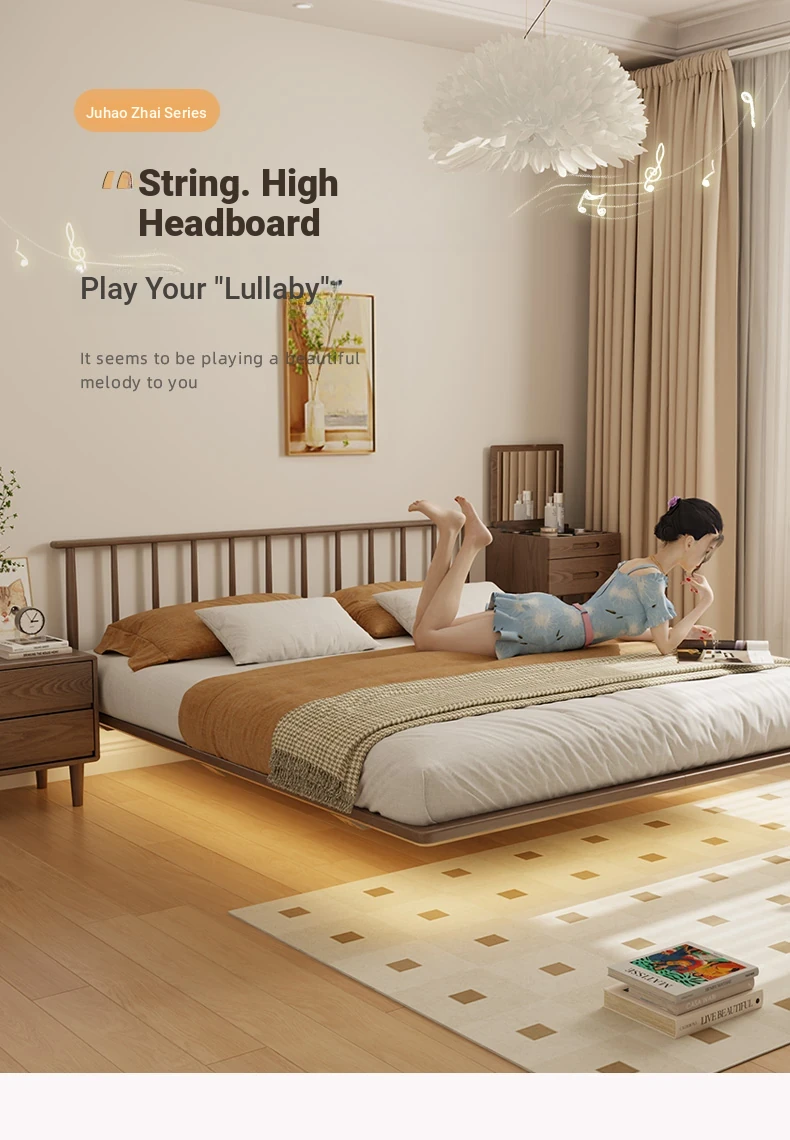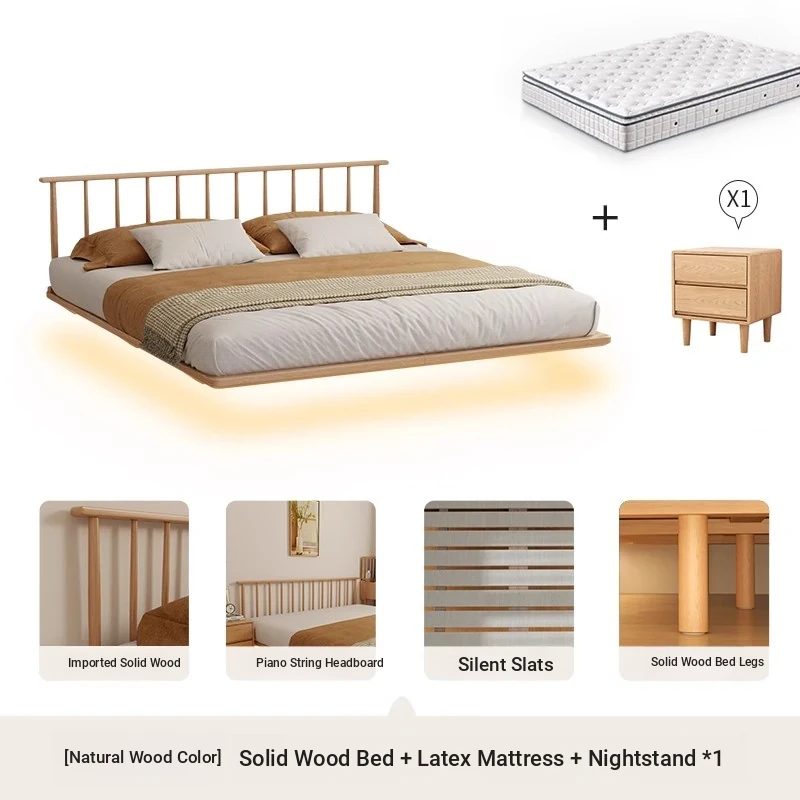 Shangxin Solid Wood Bed - Modern Minimalist Floating Bed, 1.8m Double Bed for Master Bedroom, 1.5m Windsor Bed for Small Spaces - Stylish Comfort and Space-Saving Design
