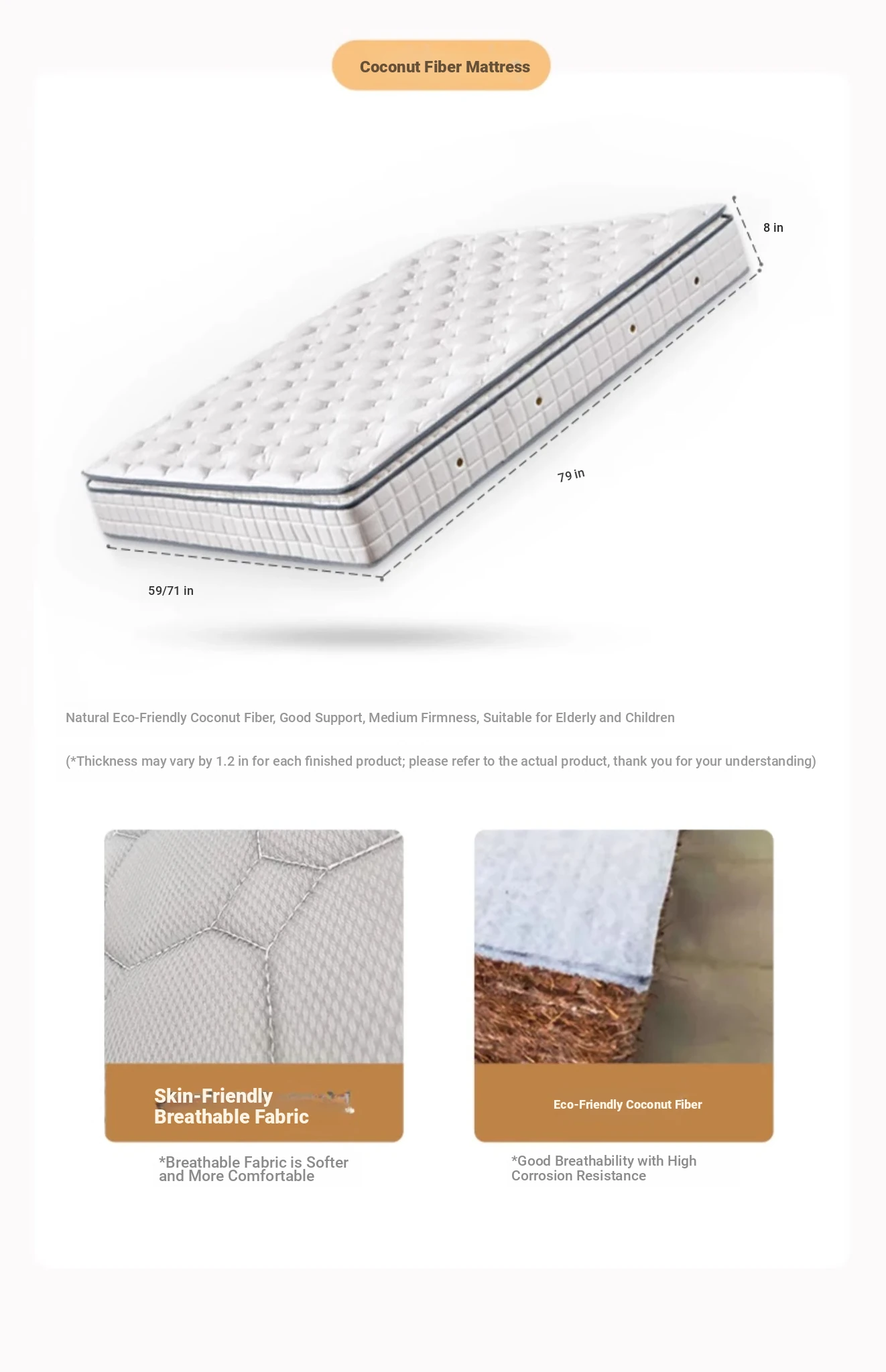 Solid wood bed (log color) + Coconut Palm mattress-light Belt