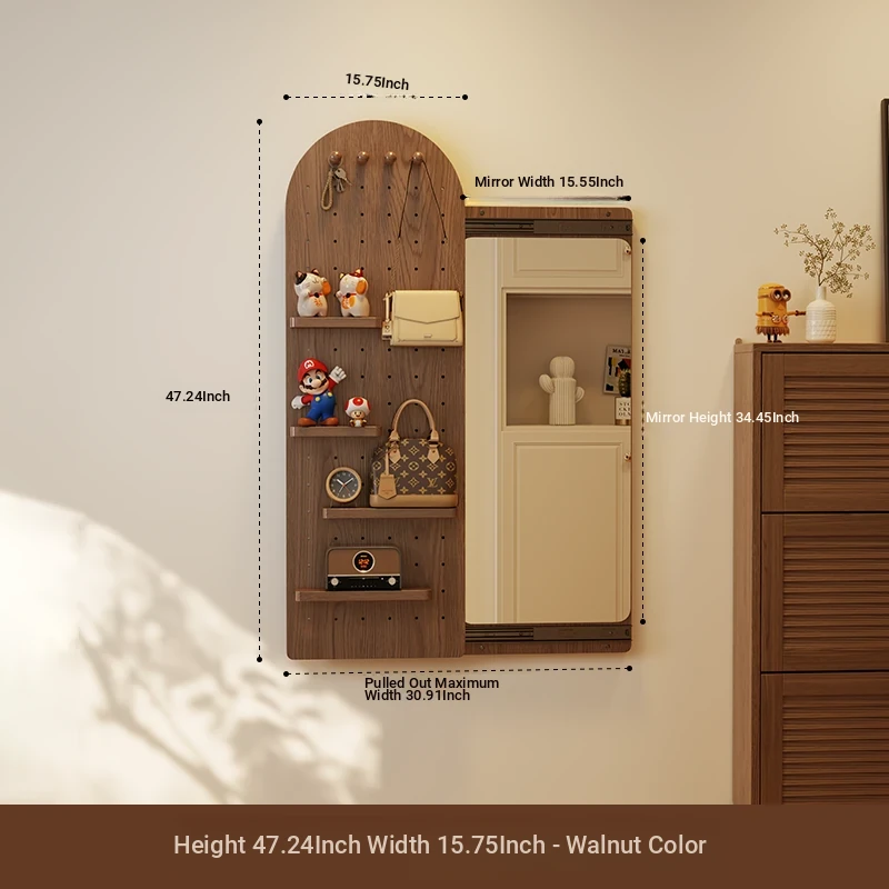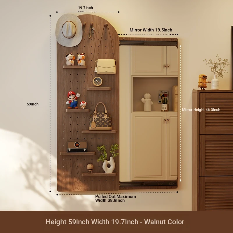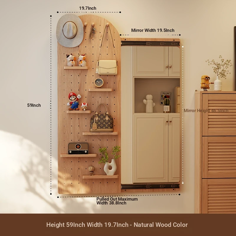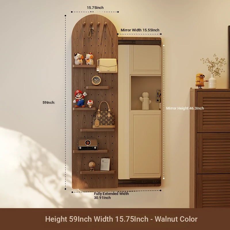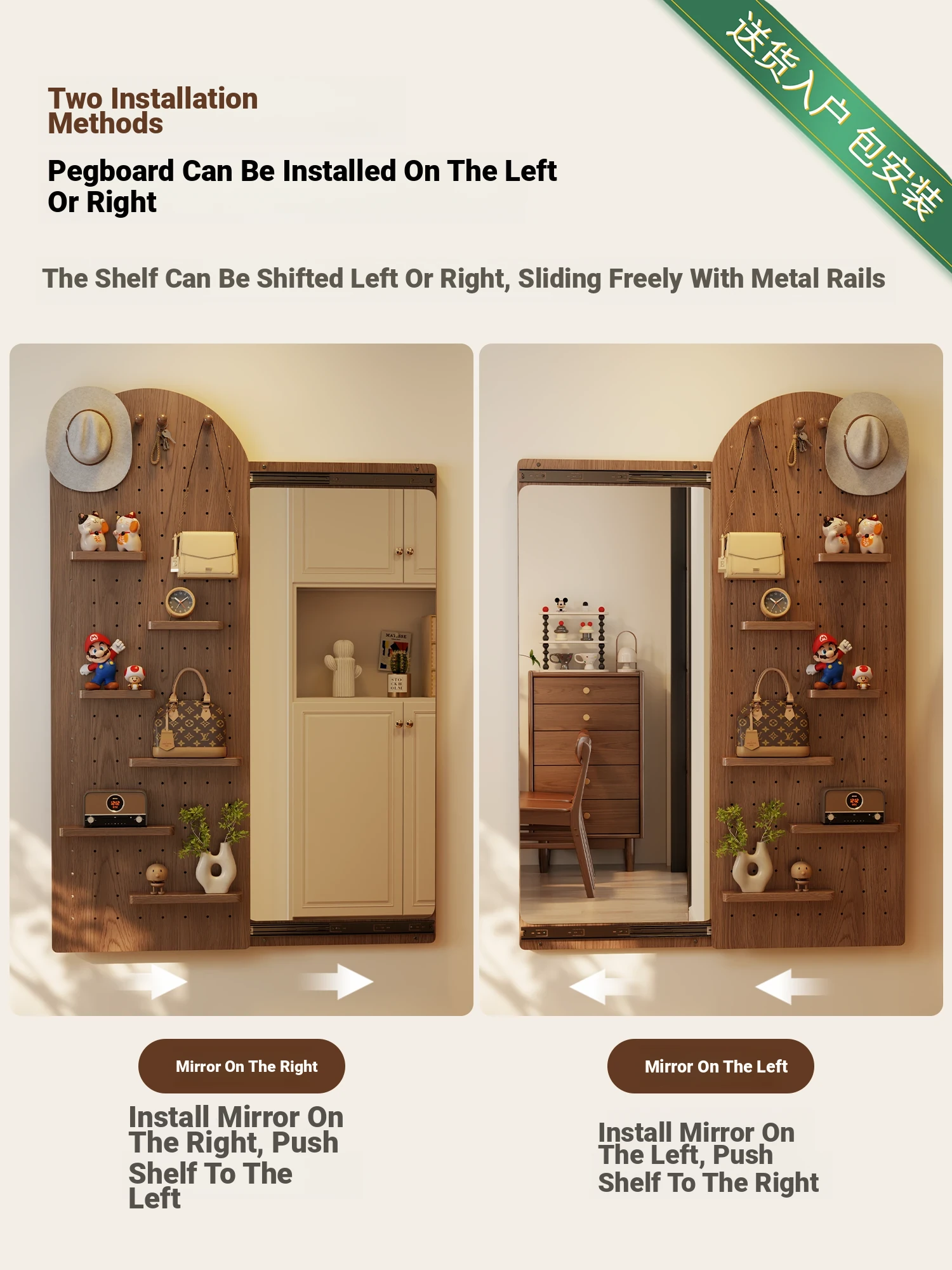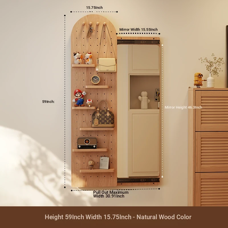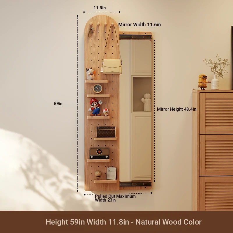 Shangxing Pavilion Full-Length Mirror with Hidden Sliding Design - Elegant Solid Wood Entryway and Bedroom Door Mirror, Perfect for Space-Saving and Stylish Home Décor