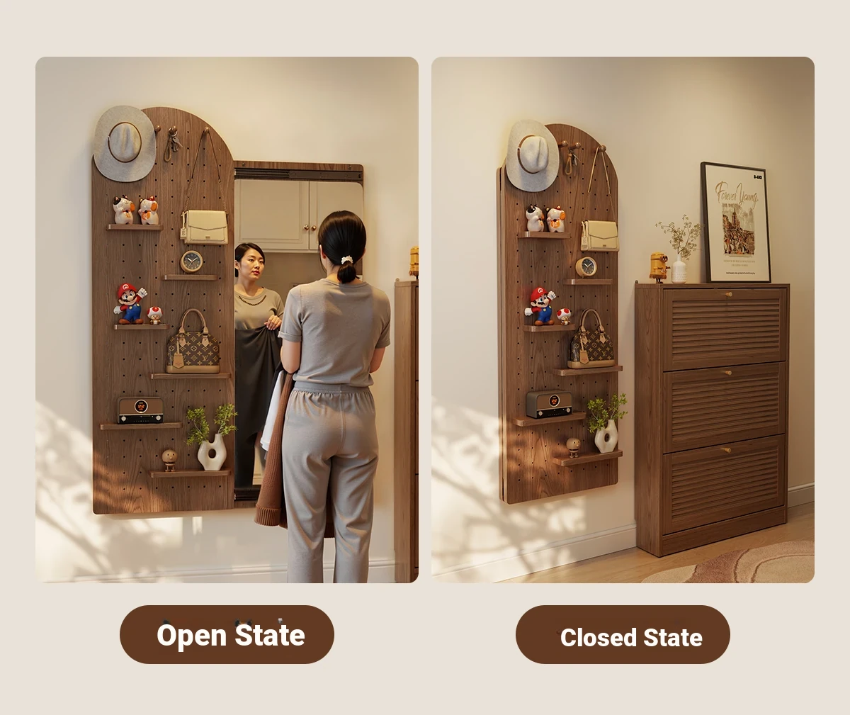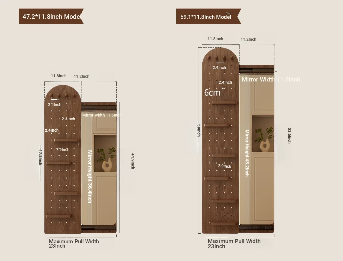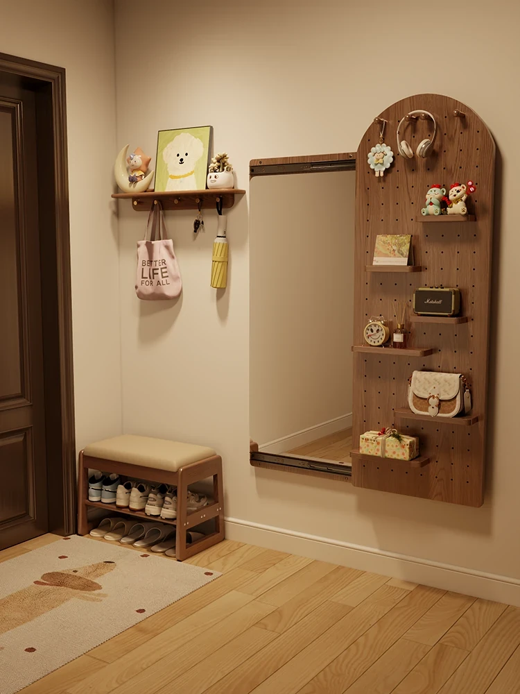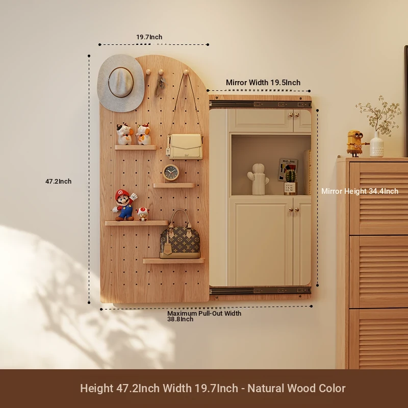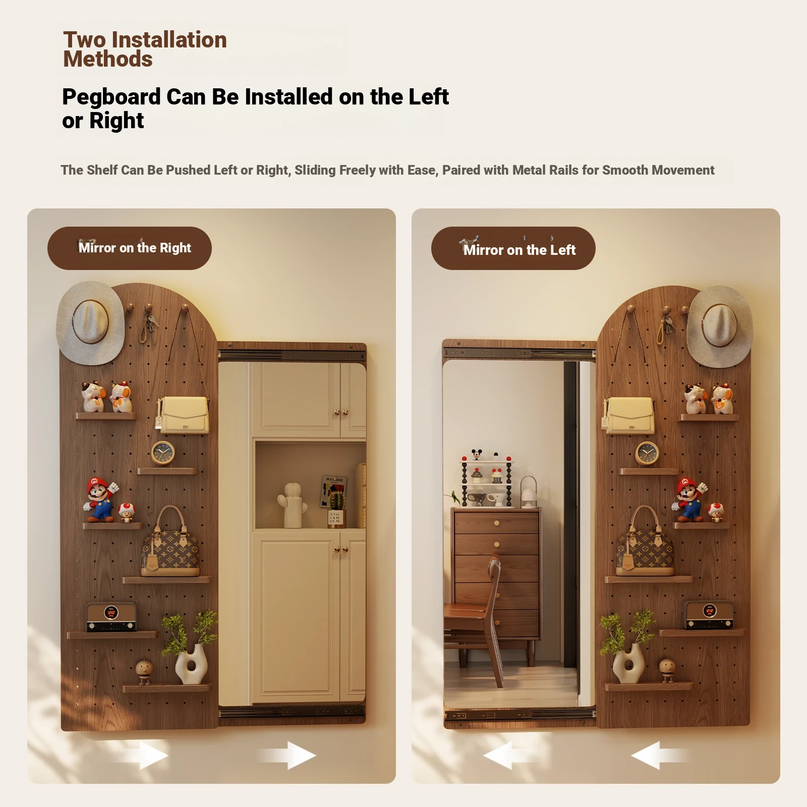 Shangxing Pavilion Full-Length Mirror with Hidden Sliding Design - Elegant Solid Wood Entryway and Bedroom Door Mirror, Perfect for Space-Saving and Stylish Home Décor