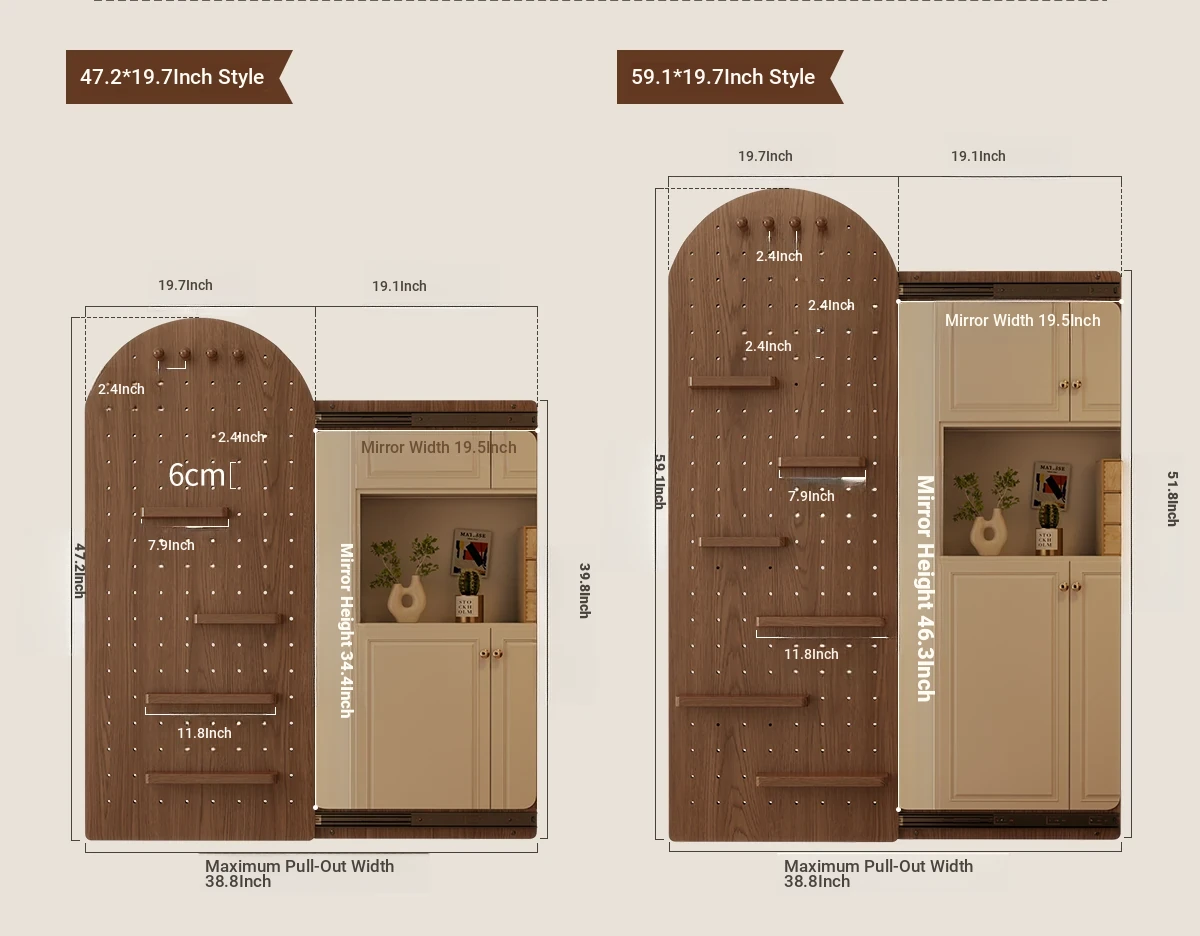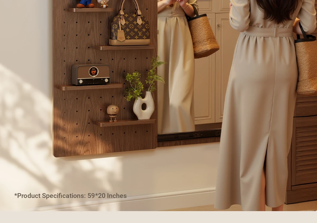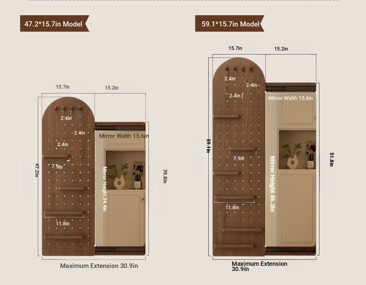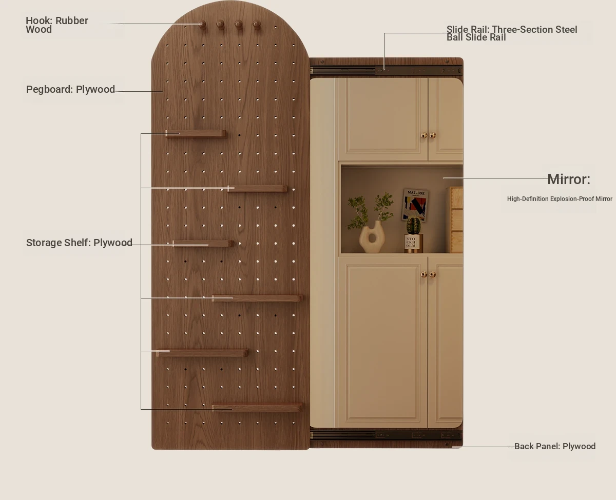 Shangxing Pavilion Full-Length Mirror with Hidden Sliding Design - Elegant Solid Wood Entryway and Bedroom Door Mirror, Perfect for Space-Saving and Stylish Home Décor