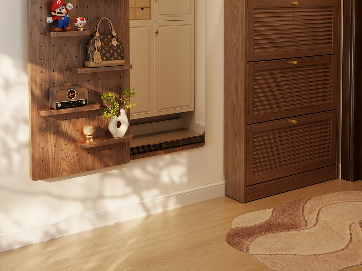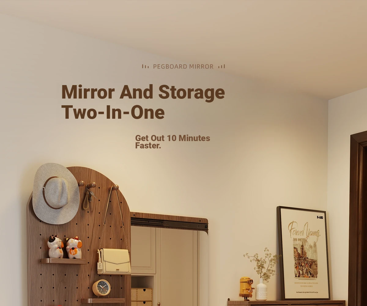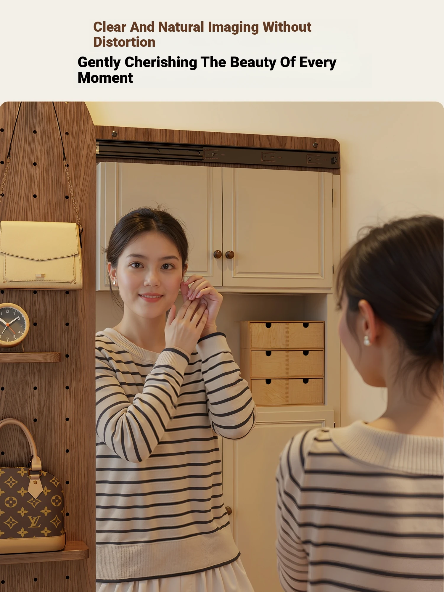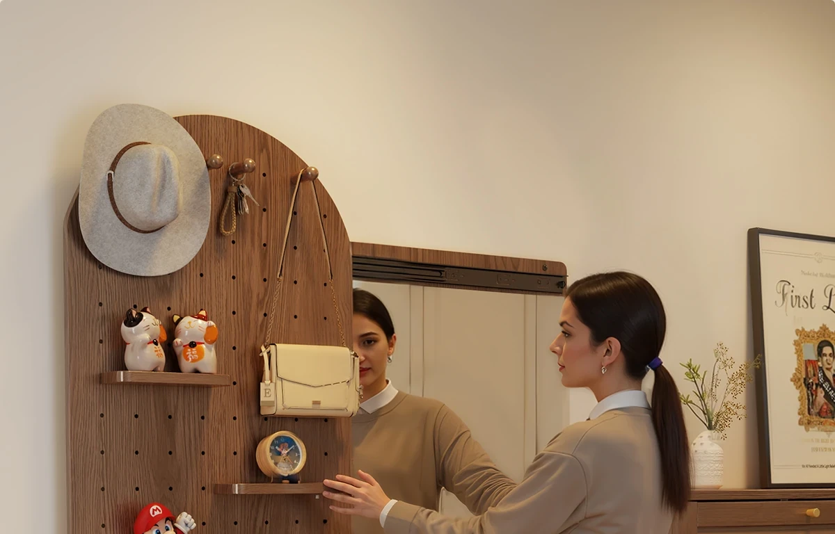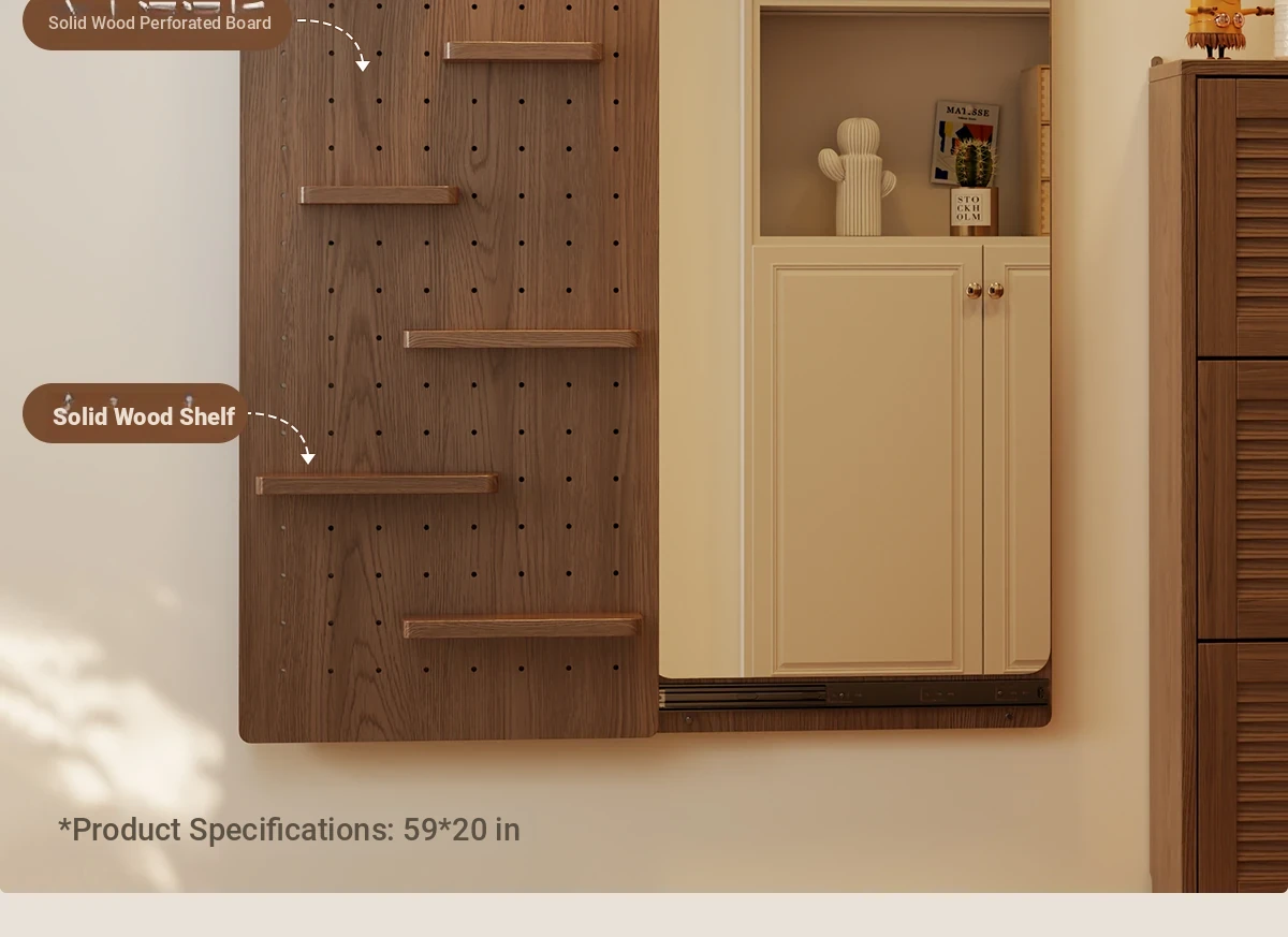 Shangxing Pavilion Full-Length Mirror with Hidden Sliding Design - Elegant Solid Wood Entryway and Bedroom Door Mirror, Perfect for Space-Saving and Stylish Home Décor