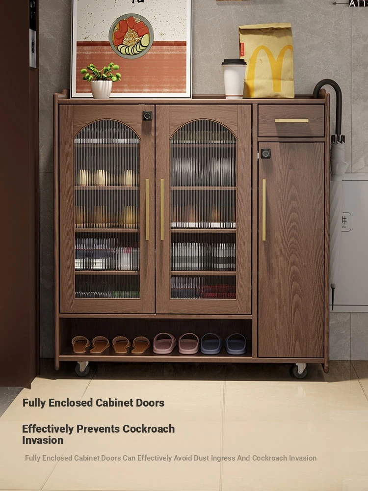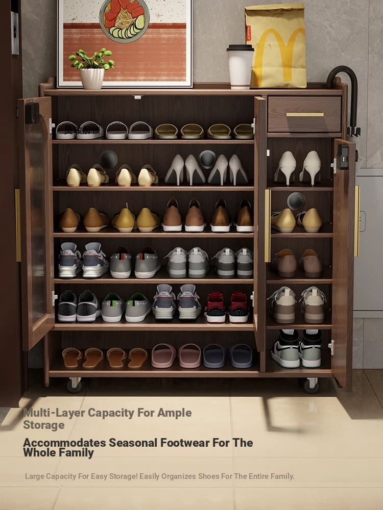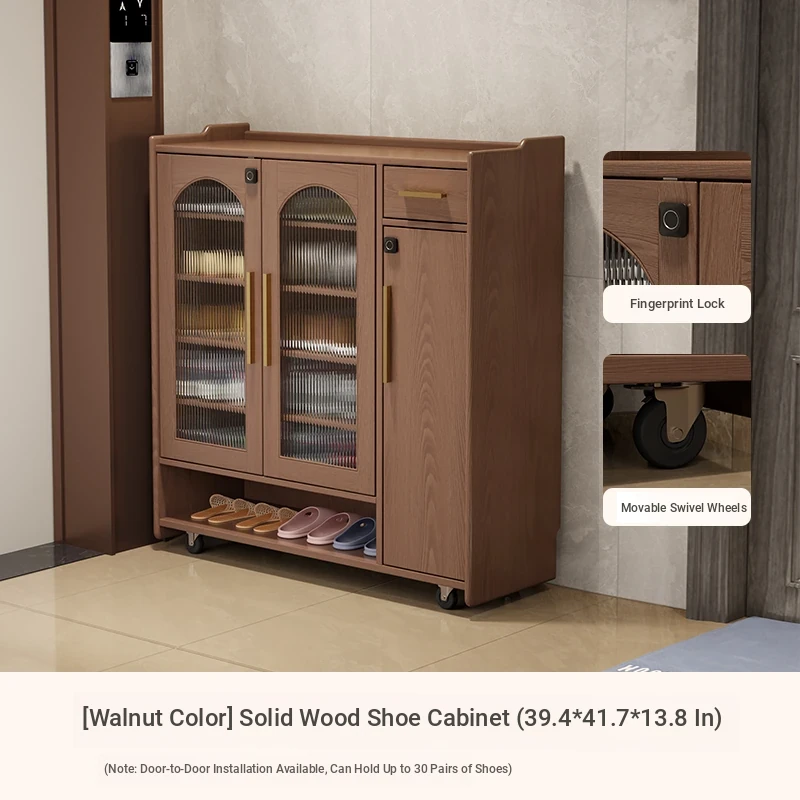 Shangxingge Solid Wood Shoe Cabinet with Lock - Stylish and Spacious for Home Use, Perfect for Entryways and Hallways, Easy to Move, New Design with Large Capacity