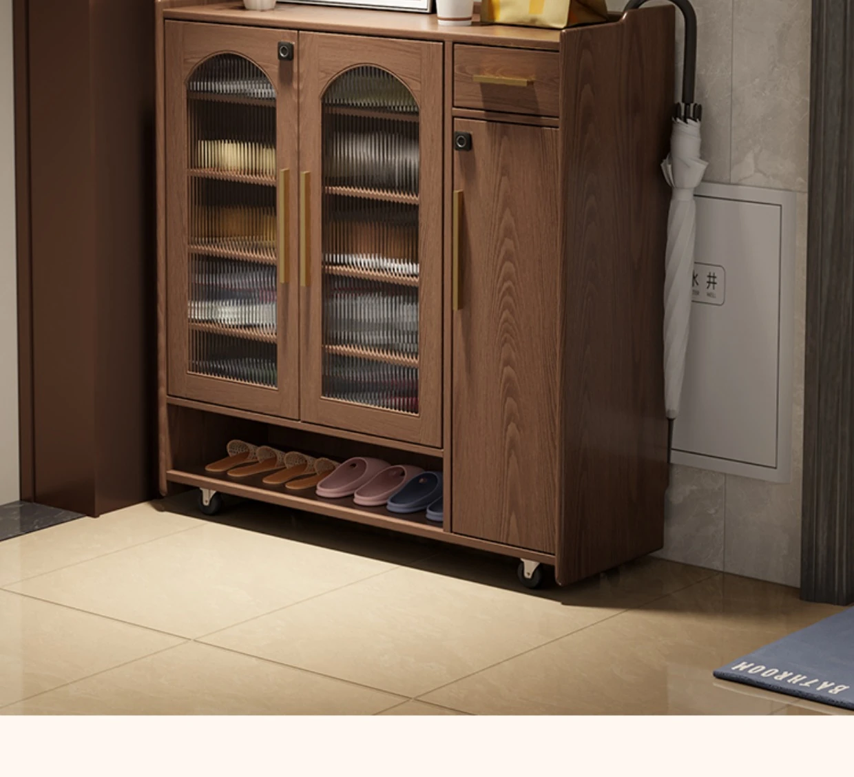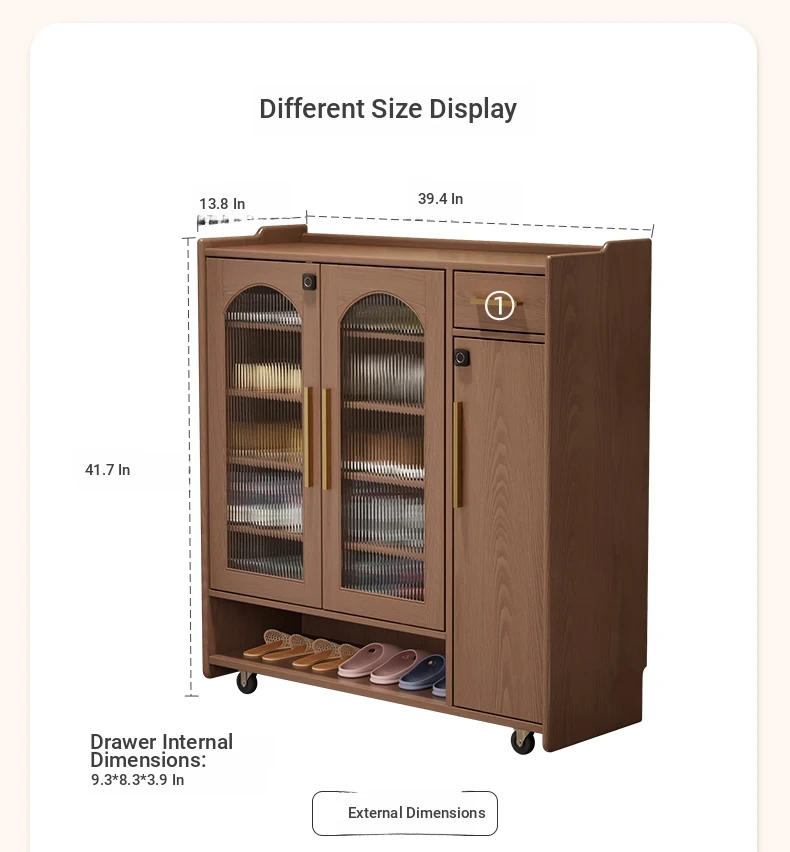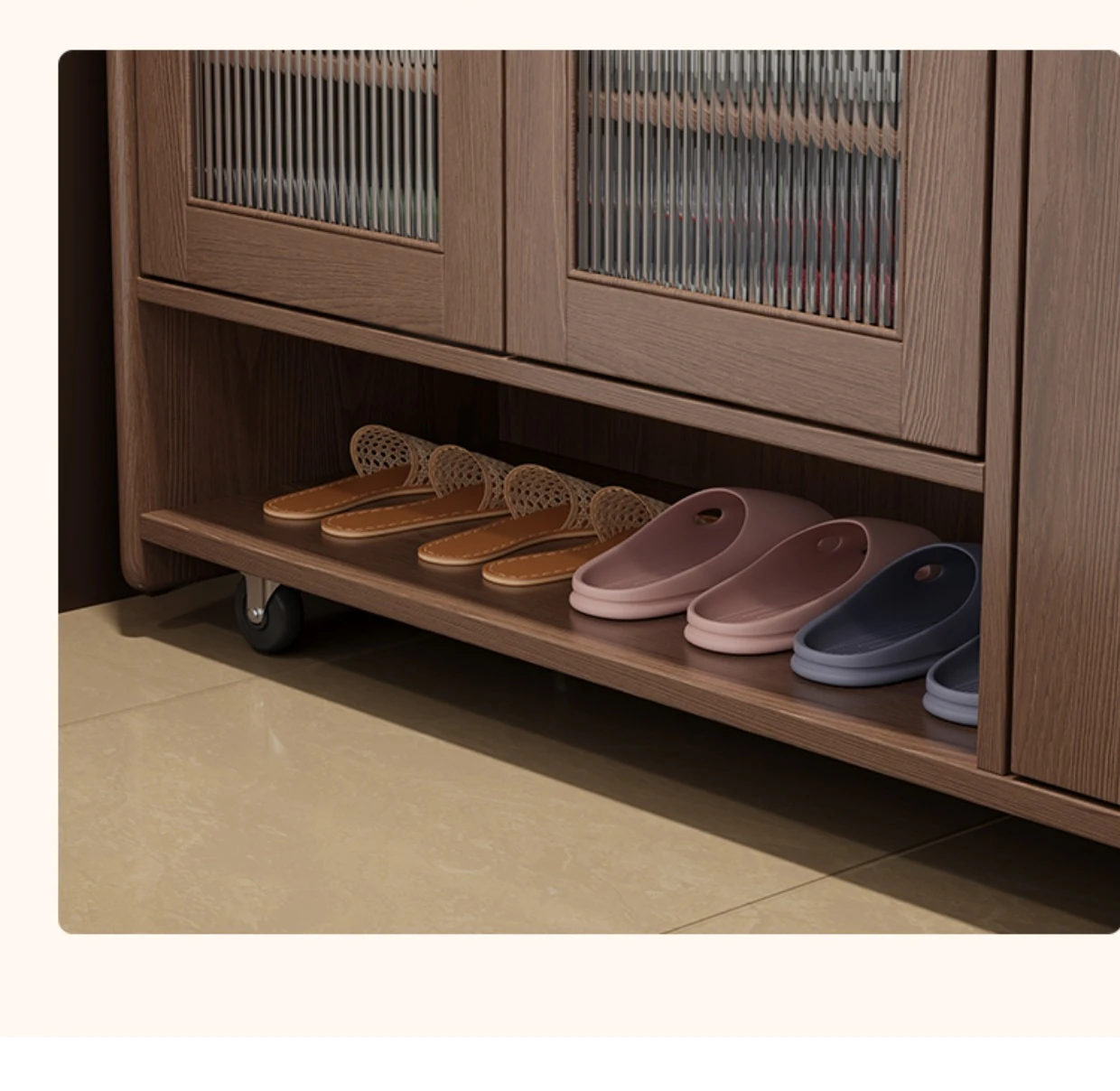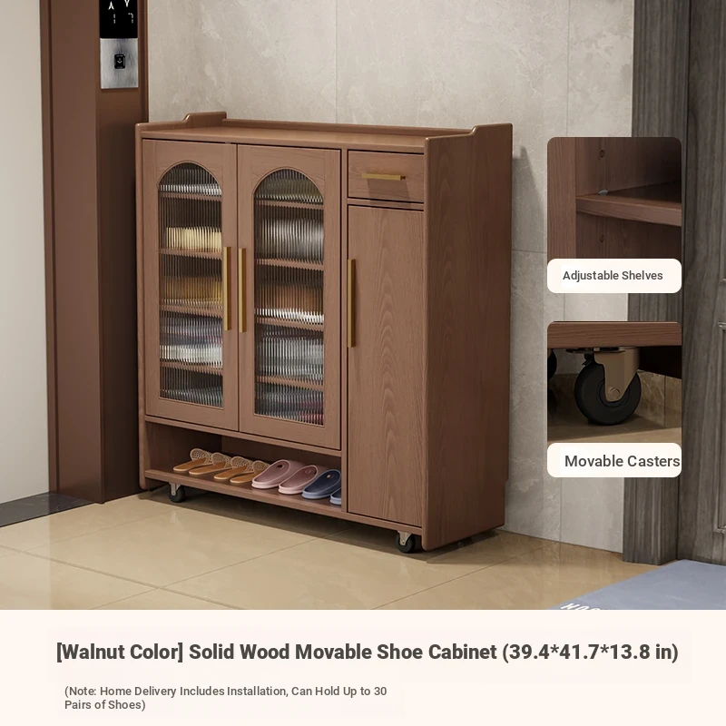 Solid Wood Movable Shoe Cabinet Lockless Edition-Walnut Color