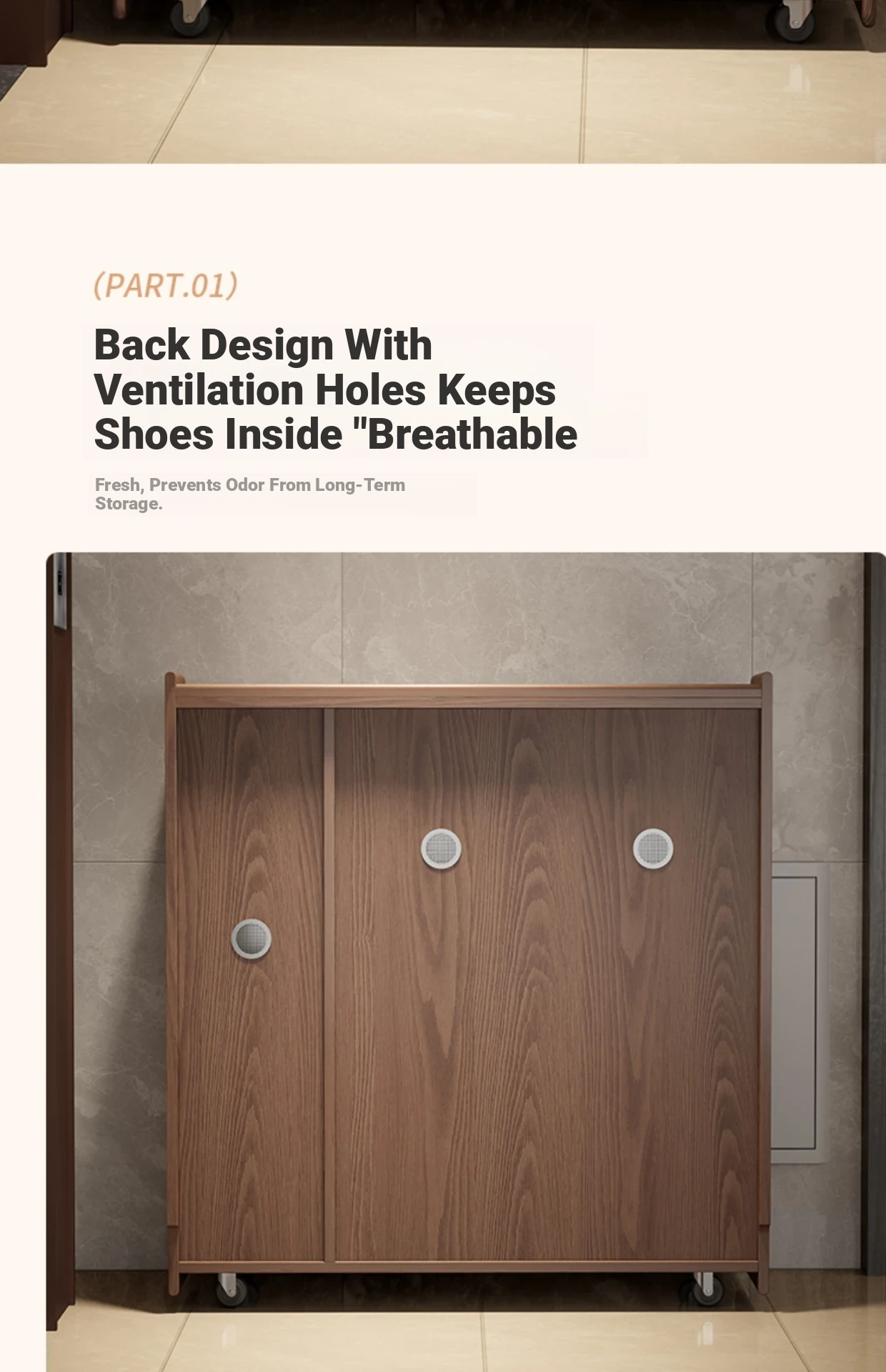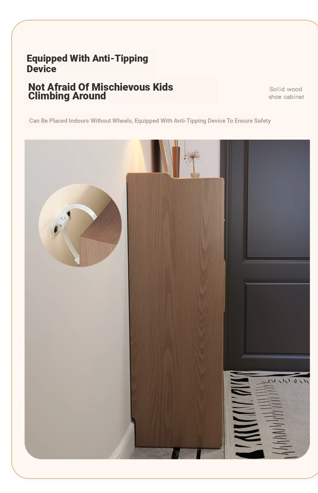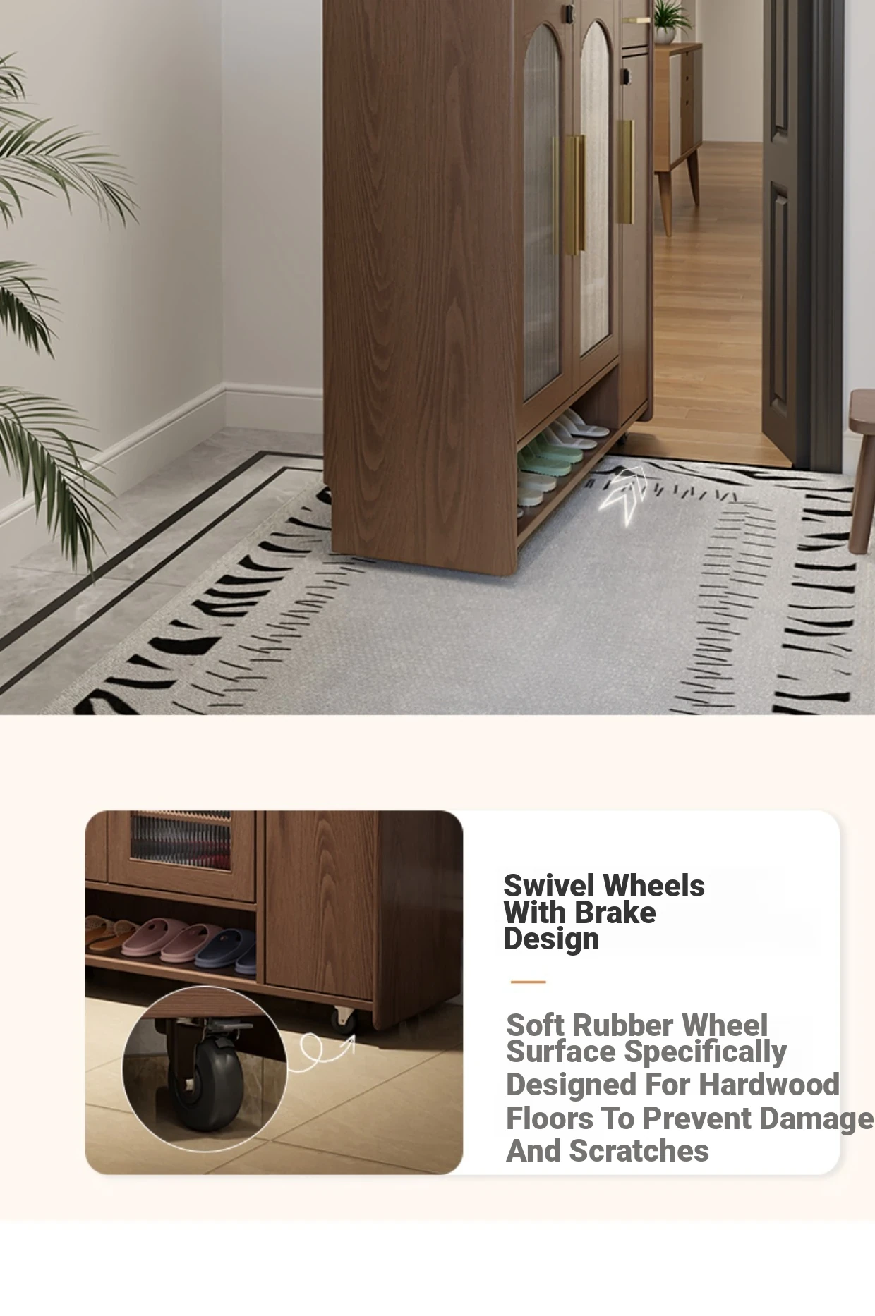 Solid Wood Movable Shoe Cabinet Lockless Edition-Walnut Color