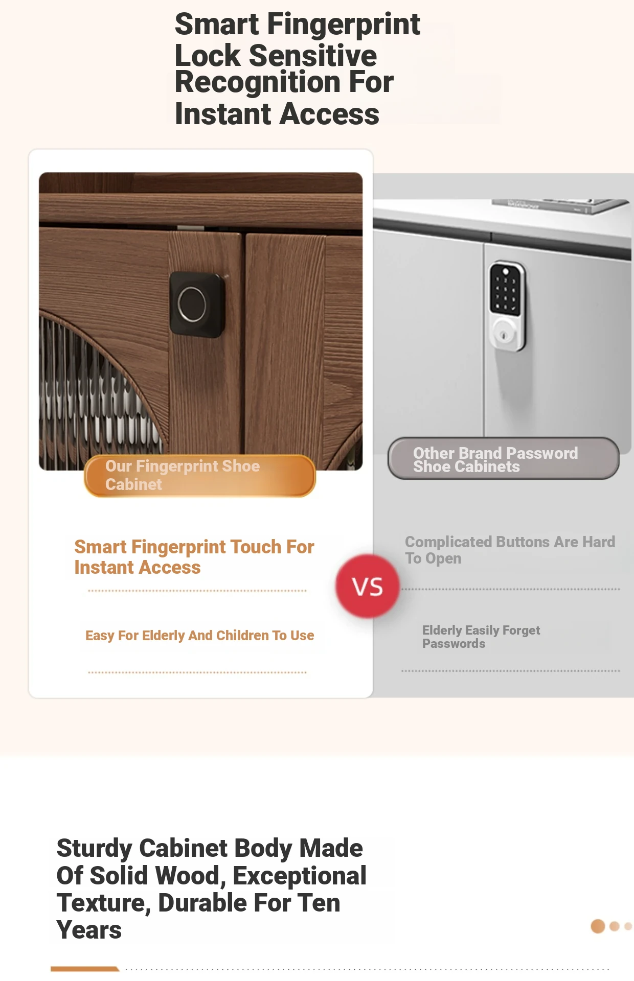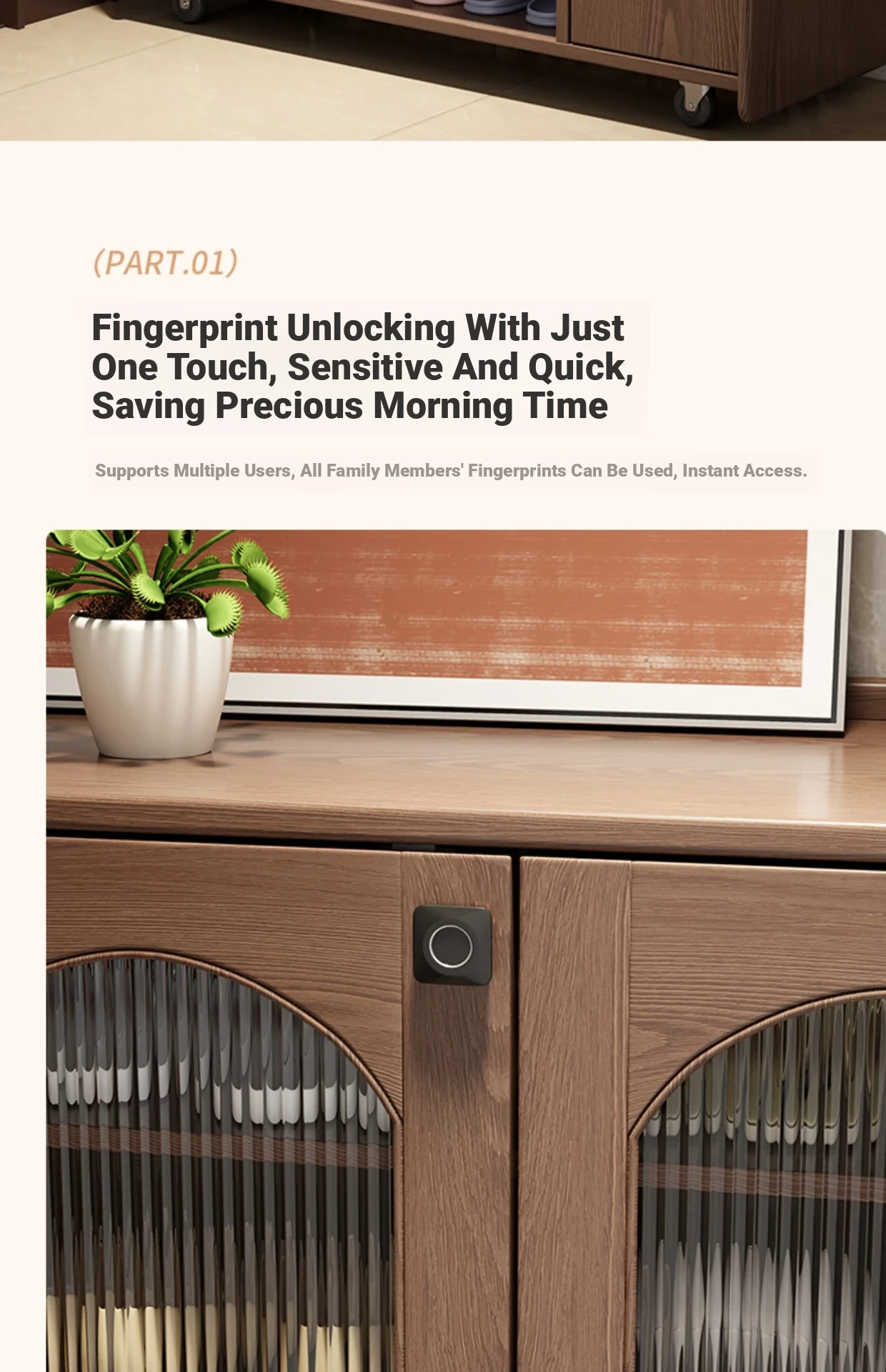 Solid Wood Movable shoe fingerprint lock version-walnut color