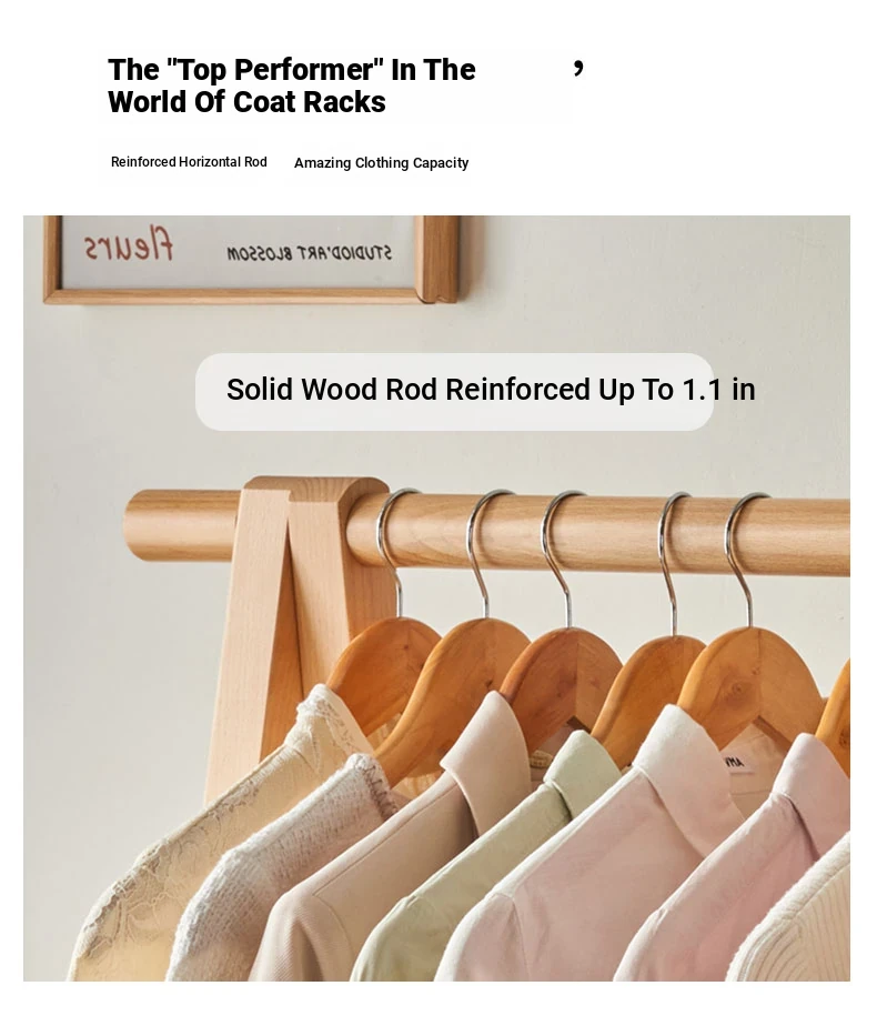 Solid Wood Garment Rack - Stylish Beech Wood Clothing Hanger Stand for Home Use, Perfect for Bedrooms and Indoor Spaces, Easy to Assemble Clothes Drying Rack