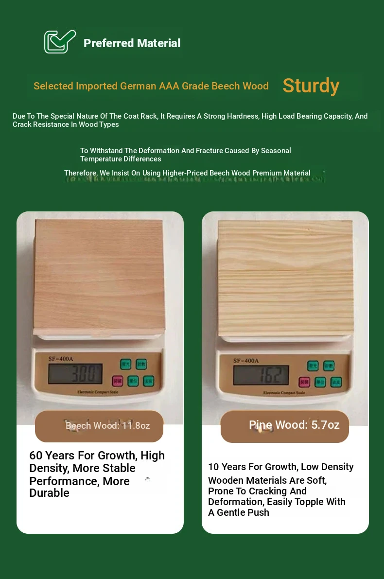 Upgraded bold [German Import full Beech] log color 39.37in coat rack