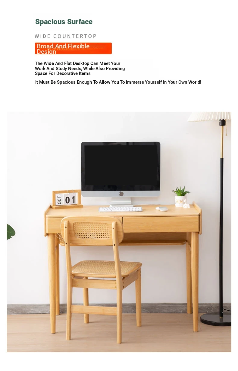 "Stylish Solid Wood Japanese Desk - Rectangular Home Study Table with Dual Drawers - Perfect for Students and Office Use"