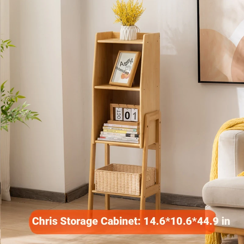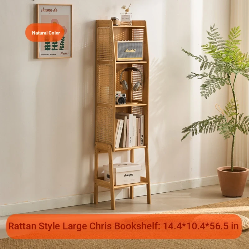 Woven Rattan Bookshelf - Stylish Floor Storage Cabinet for Living Room, TV Stand, and Bedside Use – Slim Wall-Saving Design Perfect for Small Spaces