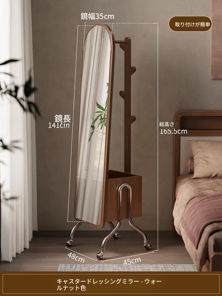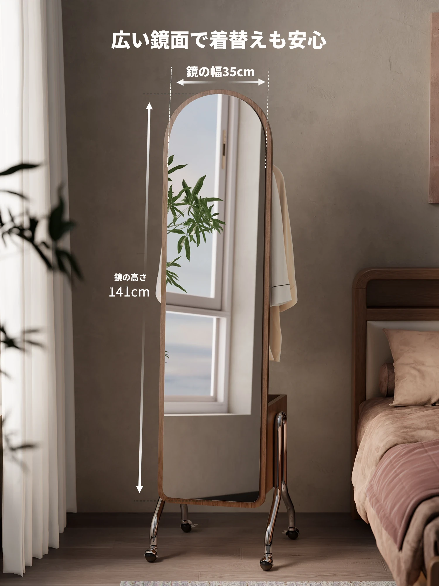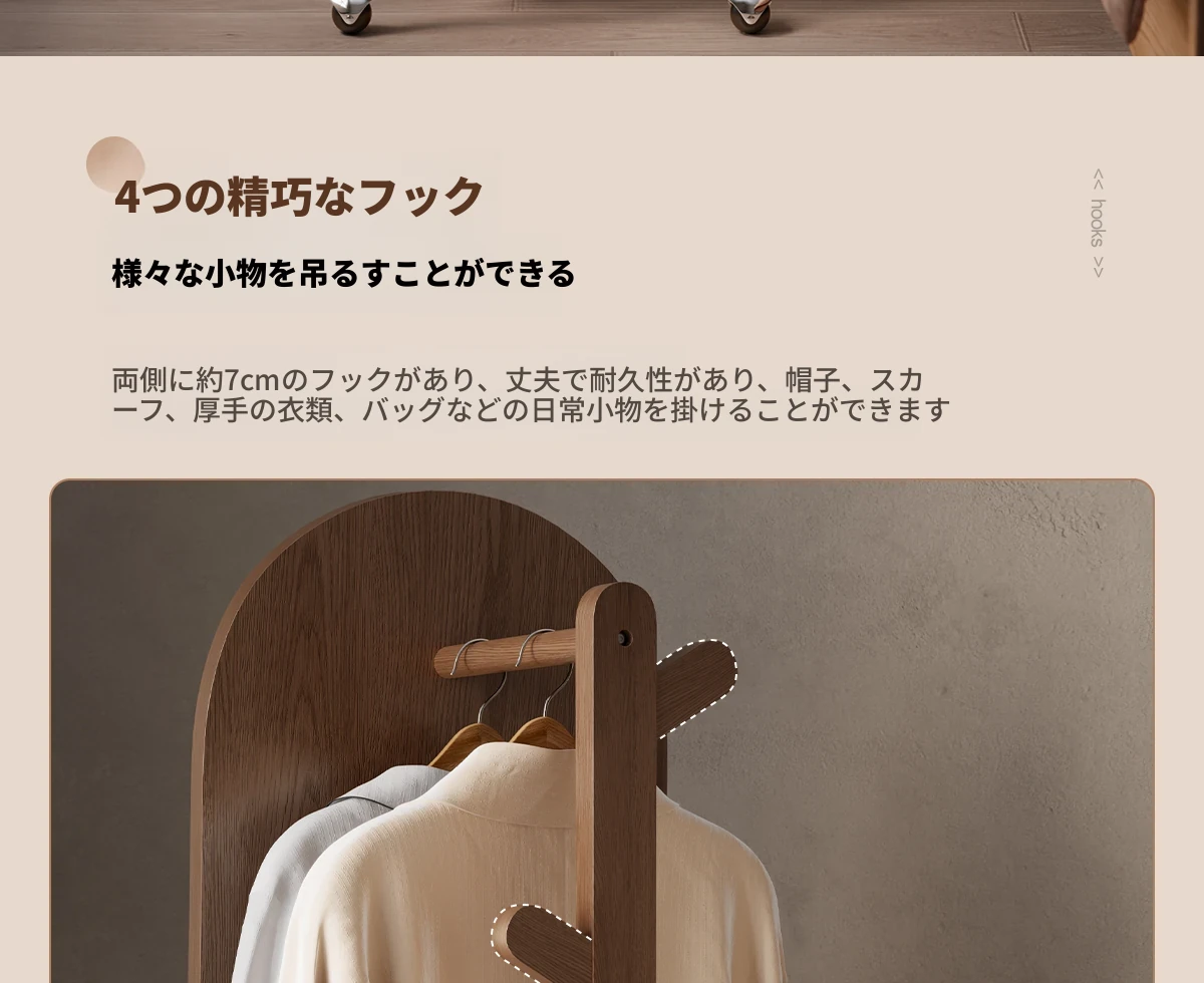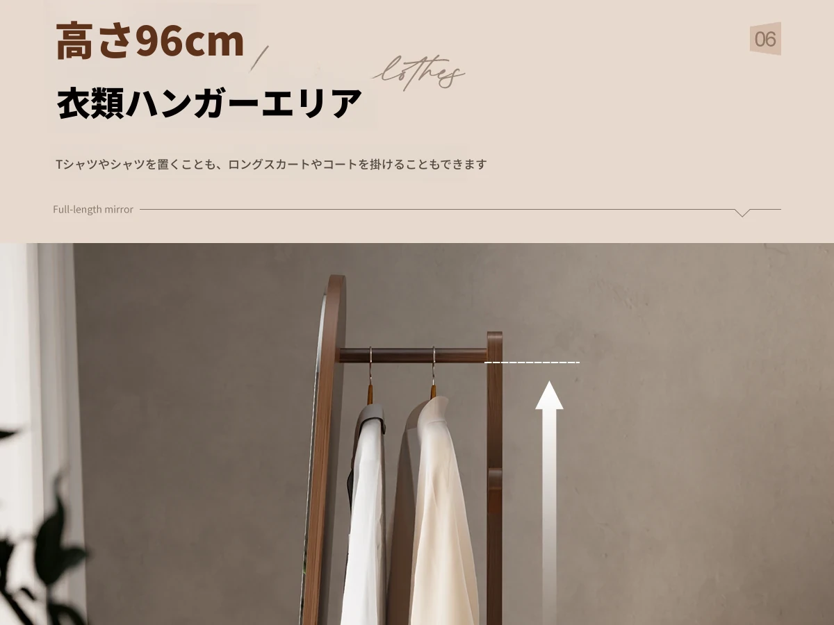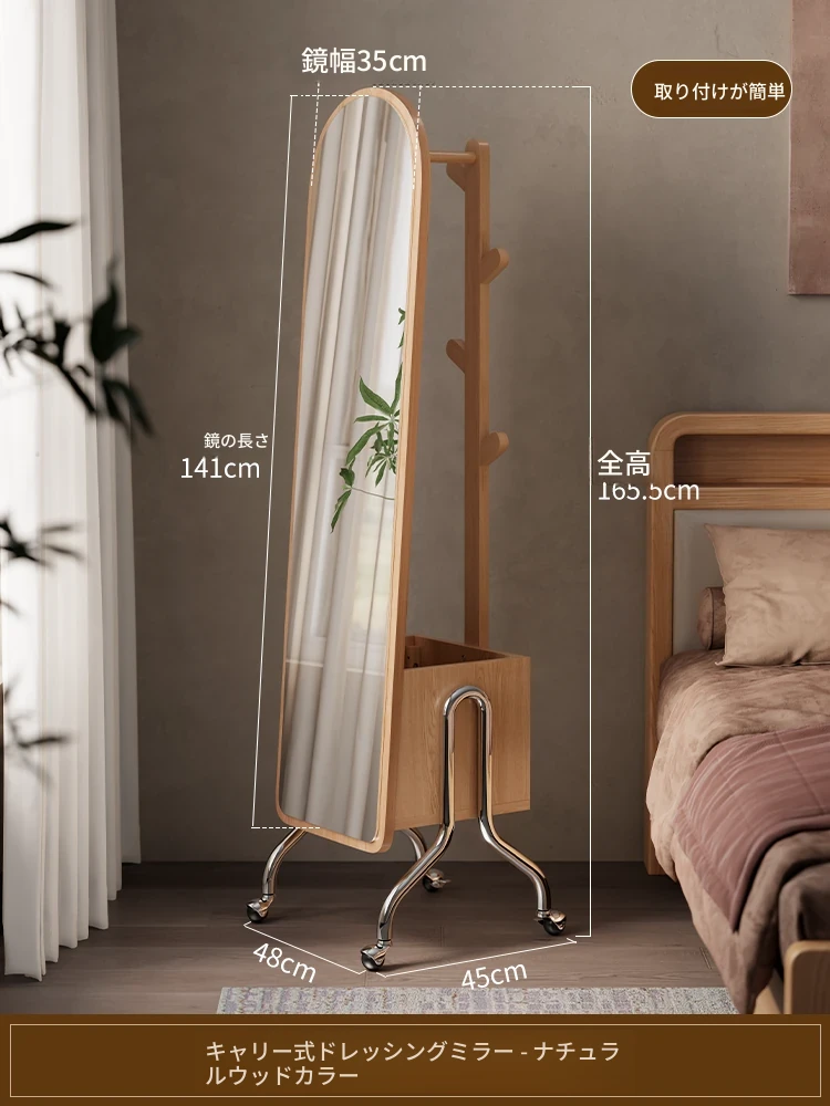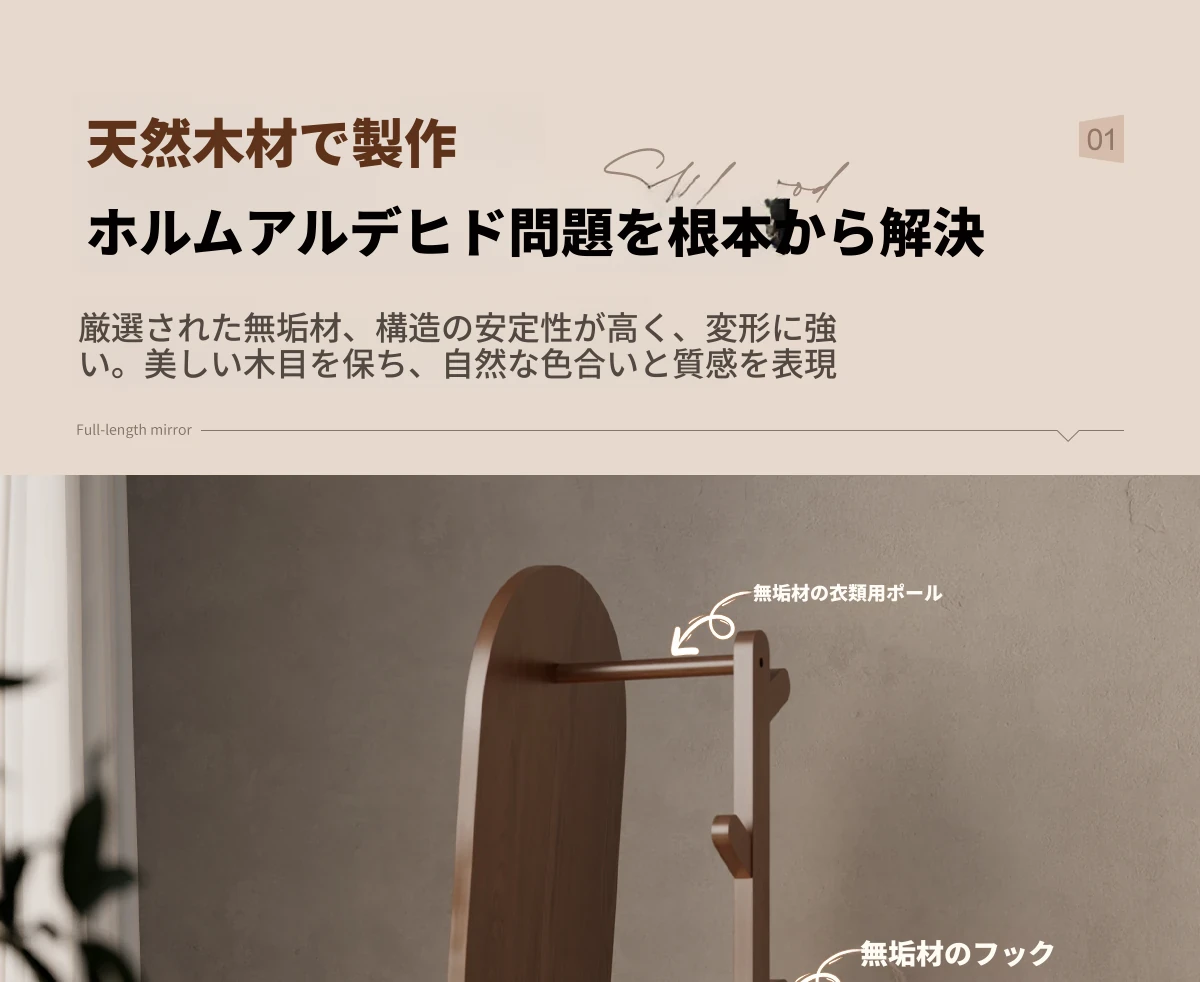 移動式コートハンガー&鏡一体型!女性のための寝室にぴったりな回転式全身鏡付き衣類収納。おしゃれで機能的なデザインで、家でのスタイルをアップグレード!