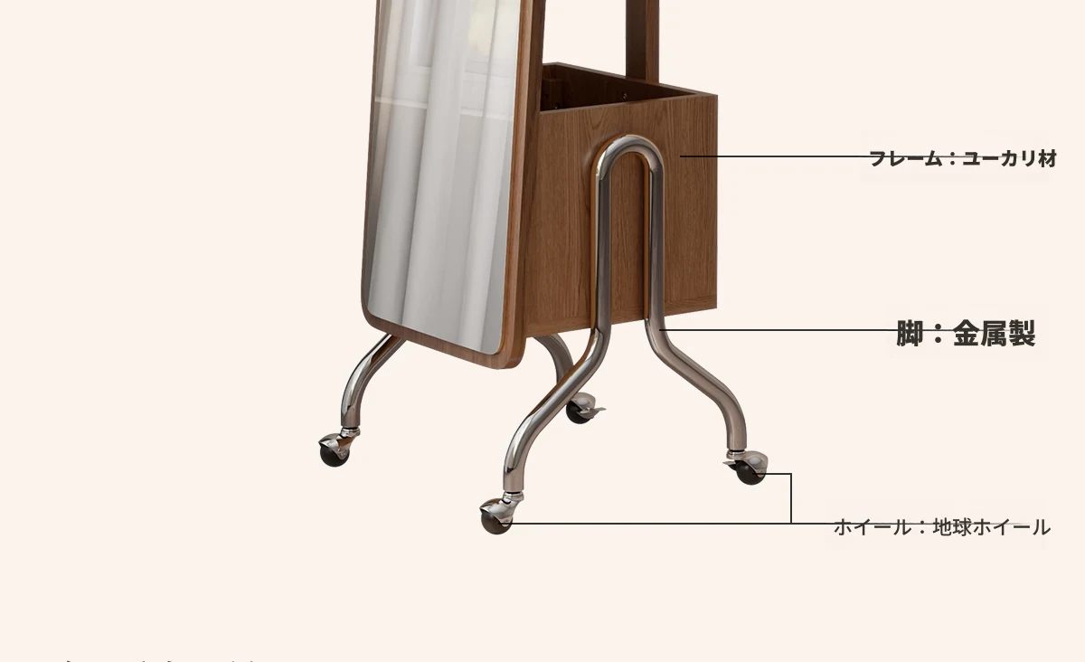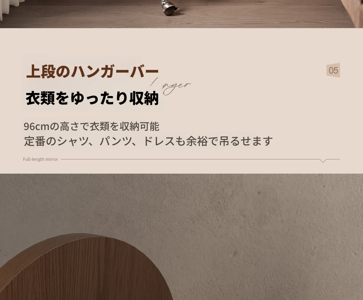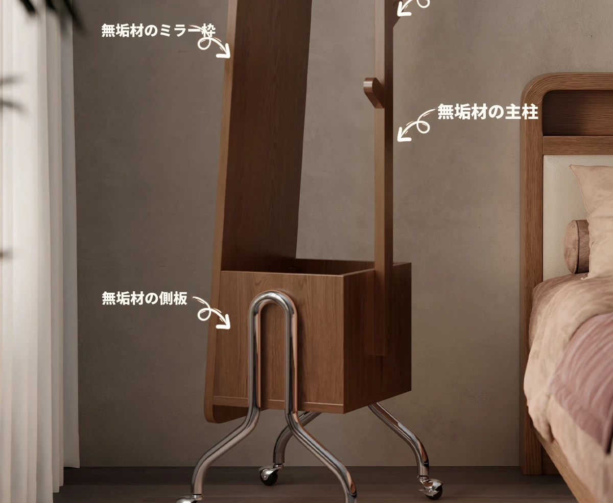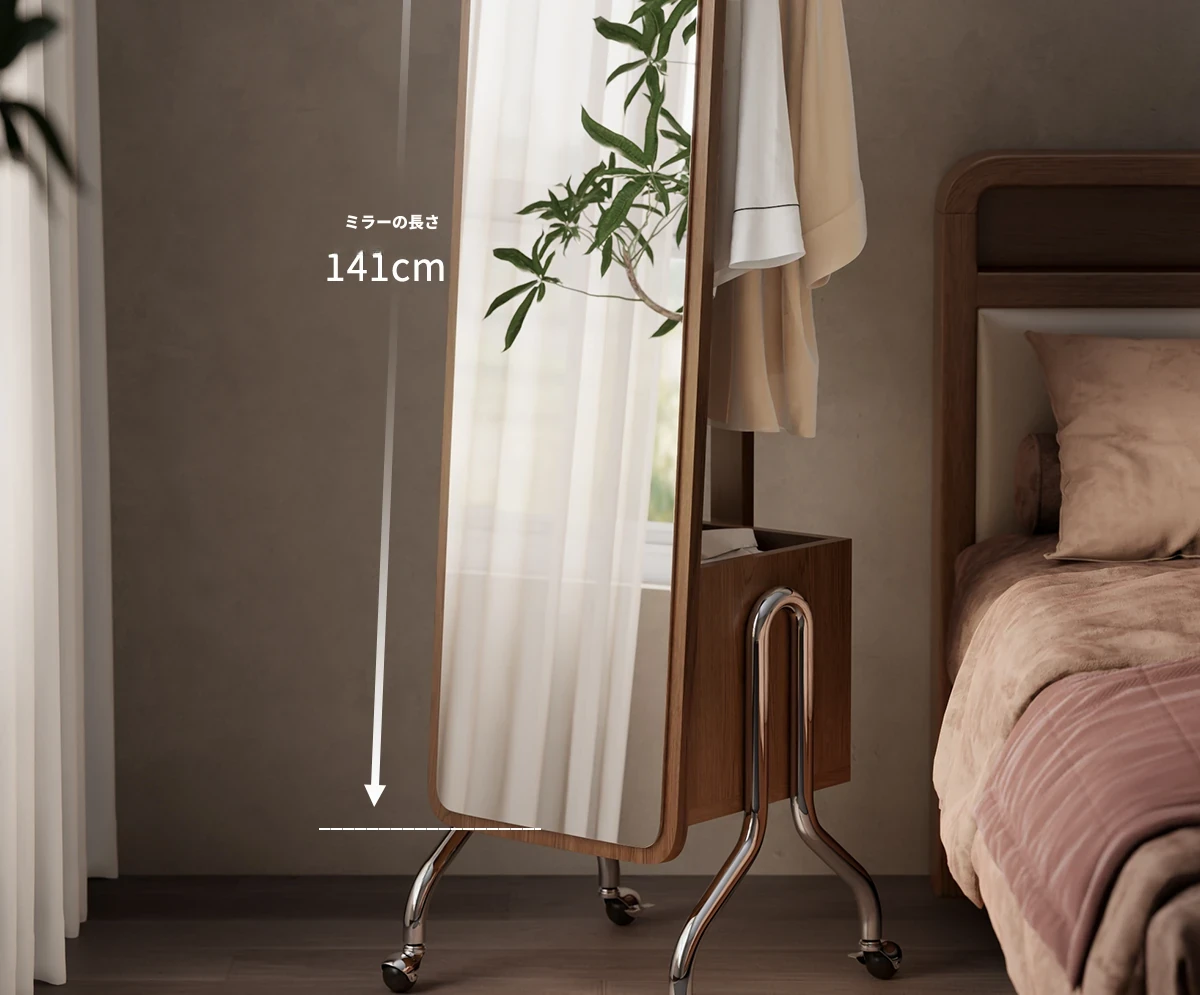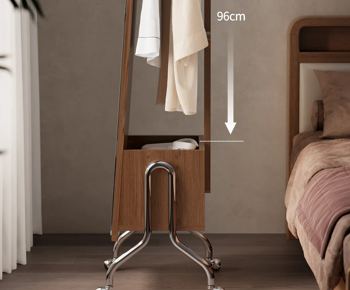 移動式コートハンガー&鏡一体型!女性のための寝室にぴったりな回転式全身鏡付き衣類収納。おしゃれで機能的なデザインで、家でのスタイルをアップグレード!