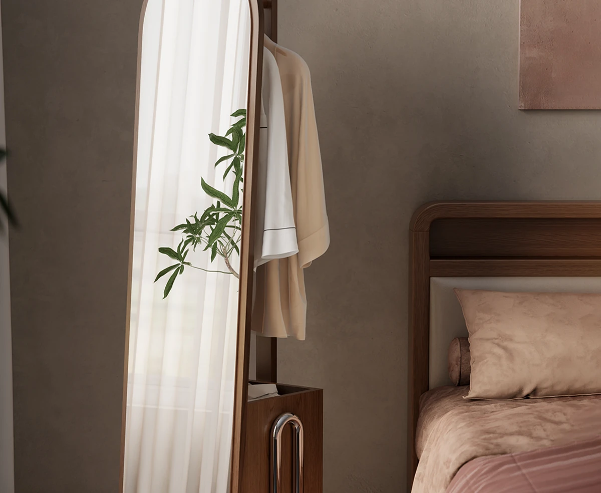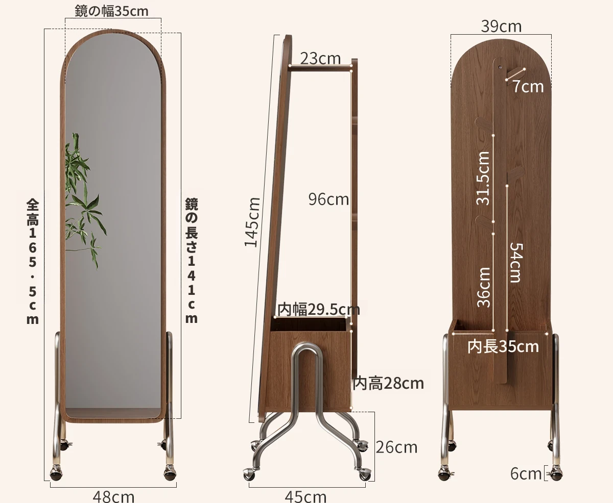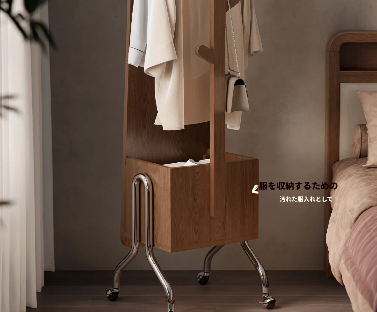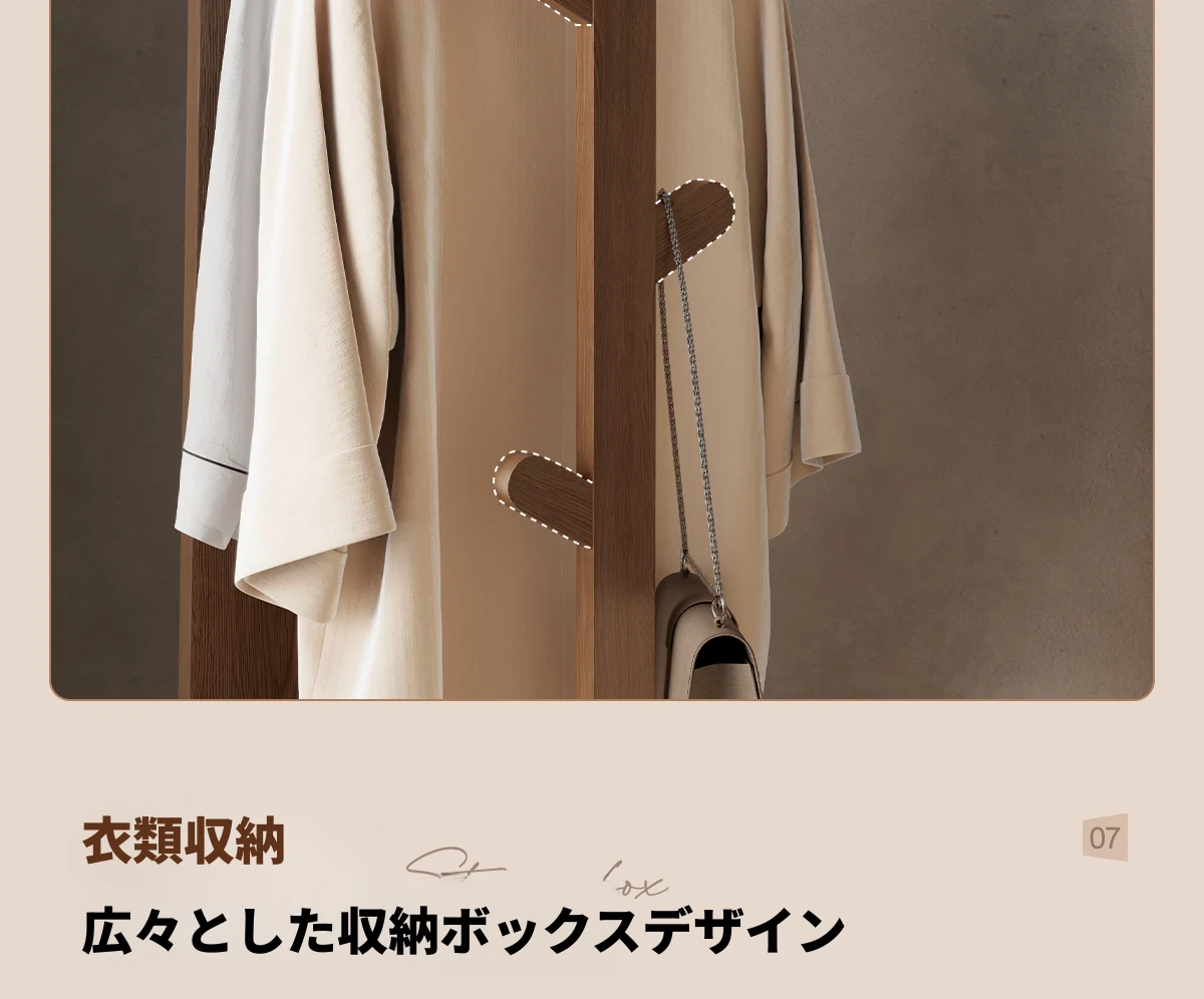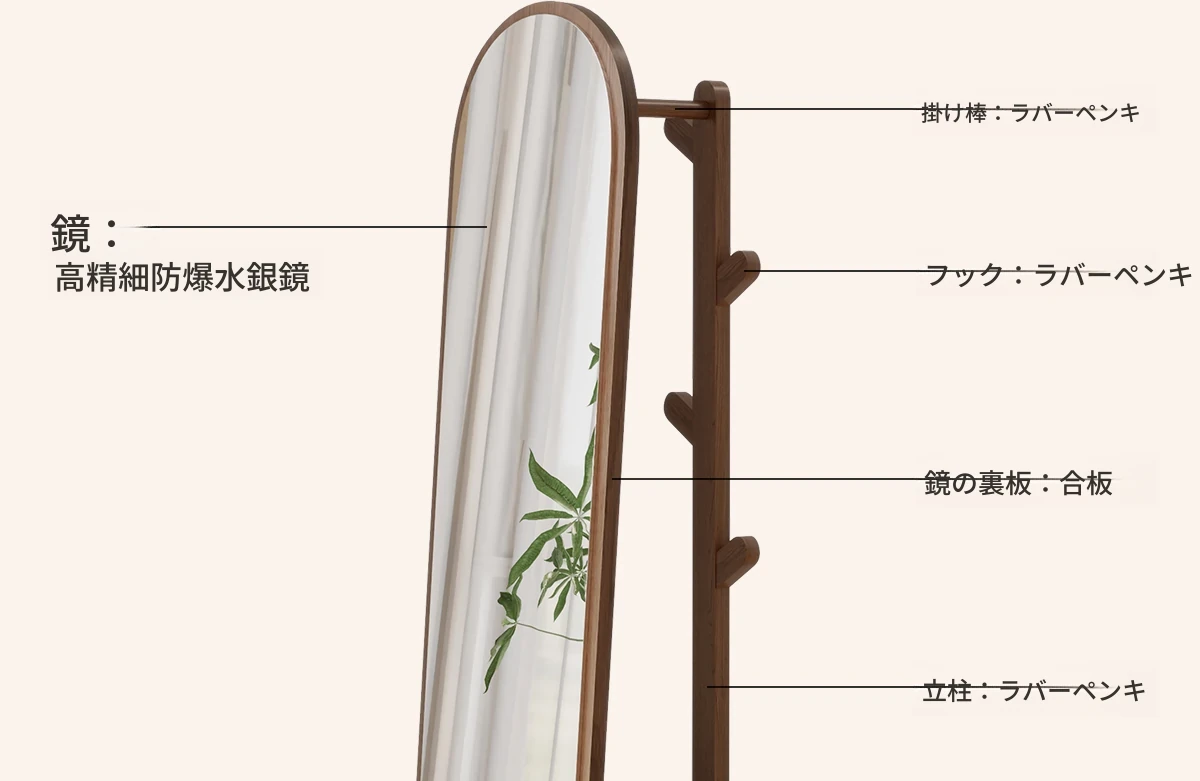 移動式コートハンガー&鏡一体型!女性のための寝室にぴったりな回転式全身鏡付き衣類収納。おしゃれで機能的なデザインで、家でのスタイルをアップグレード!