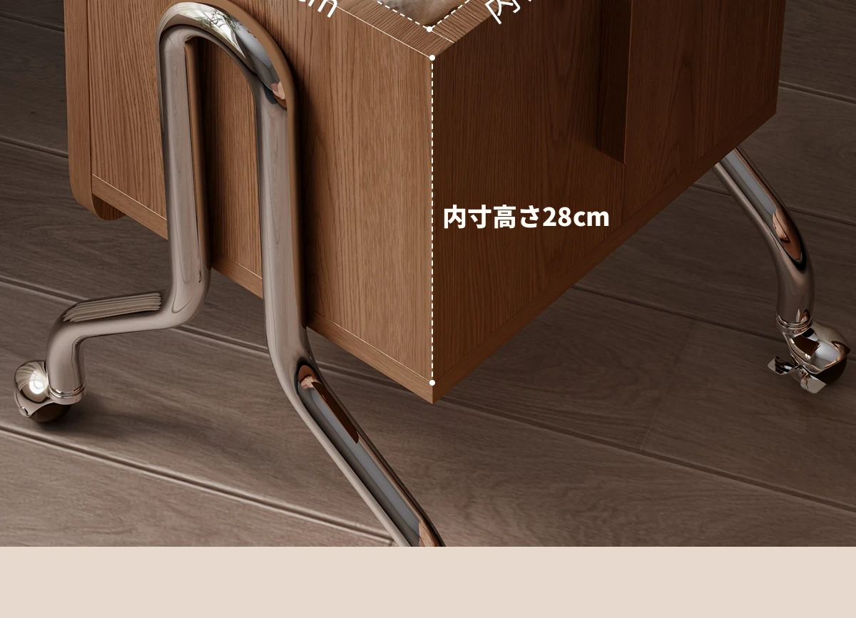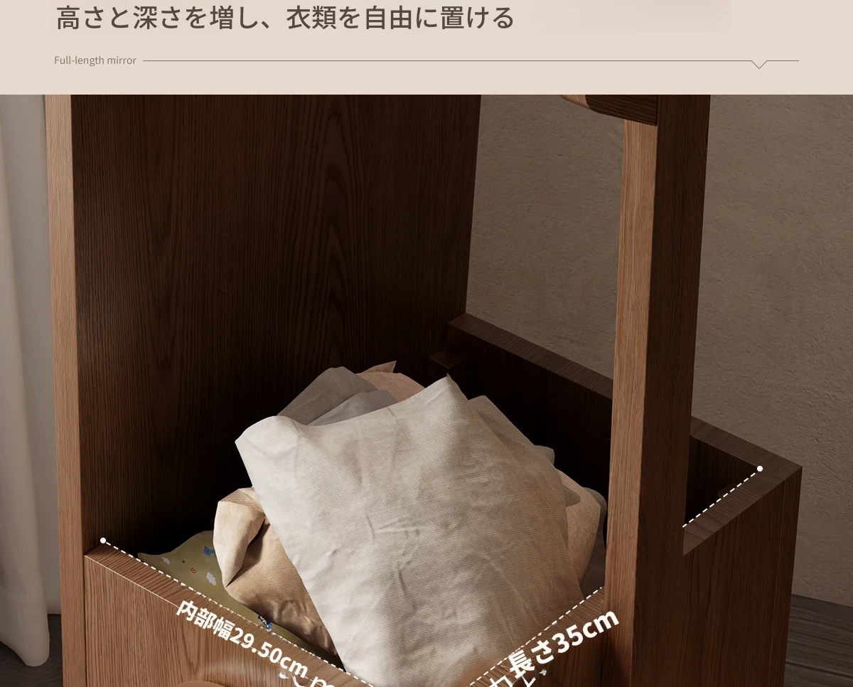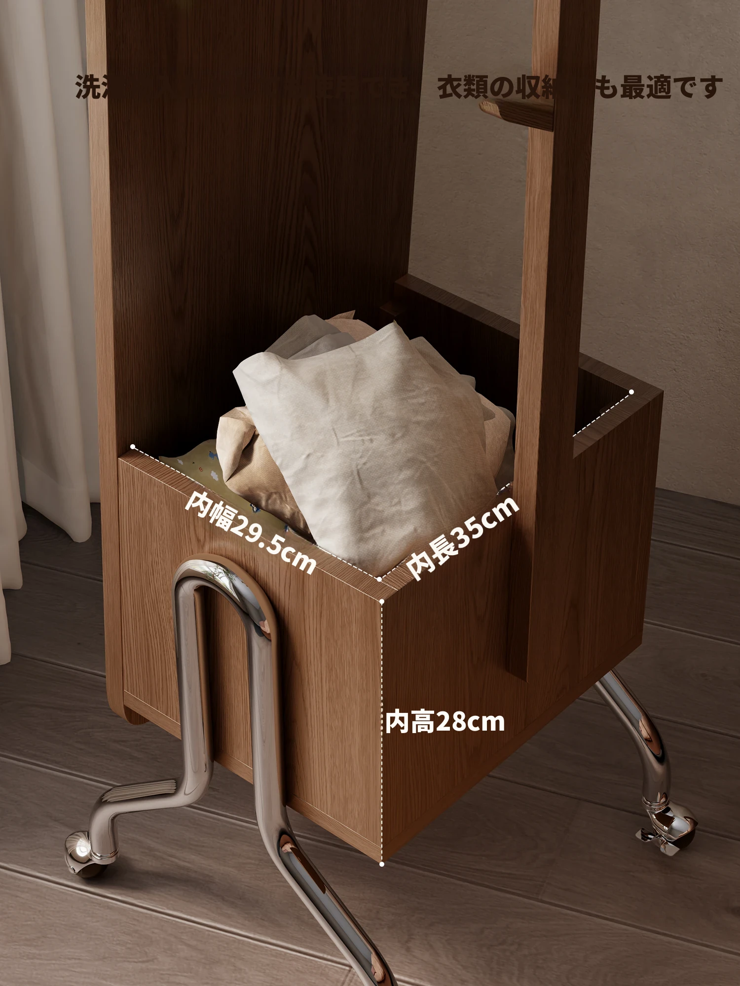 洗濯カゴ付き姿見 - ナチュラル色 取り付け込み
