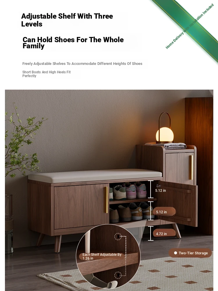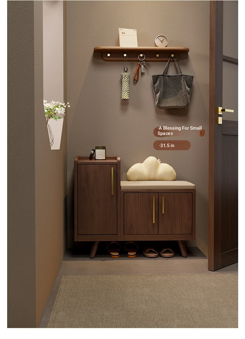 Shangxin Ge Vintage-Style Entryway Shoe Bench - Solid Wood Multifunctional Shoe Cabinet with Seating for Convenient Shoe Changing at the Front Door