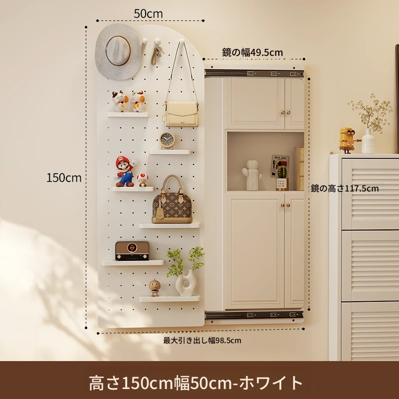 【取付け込み】天然木-高さ150*幅50cm ホワイト色