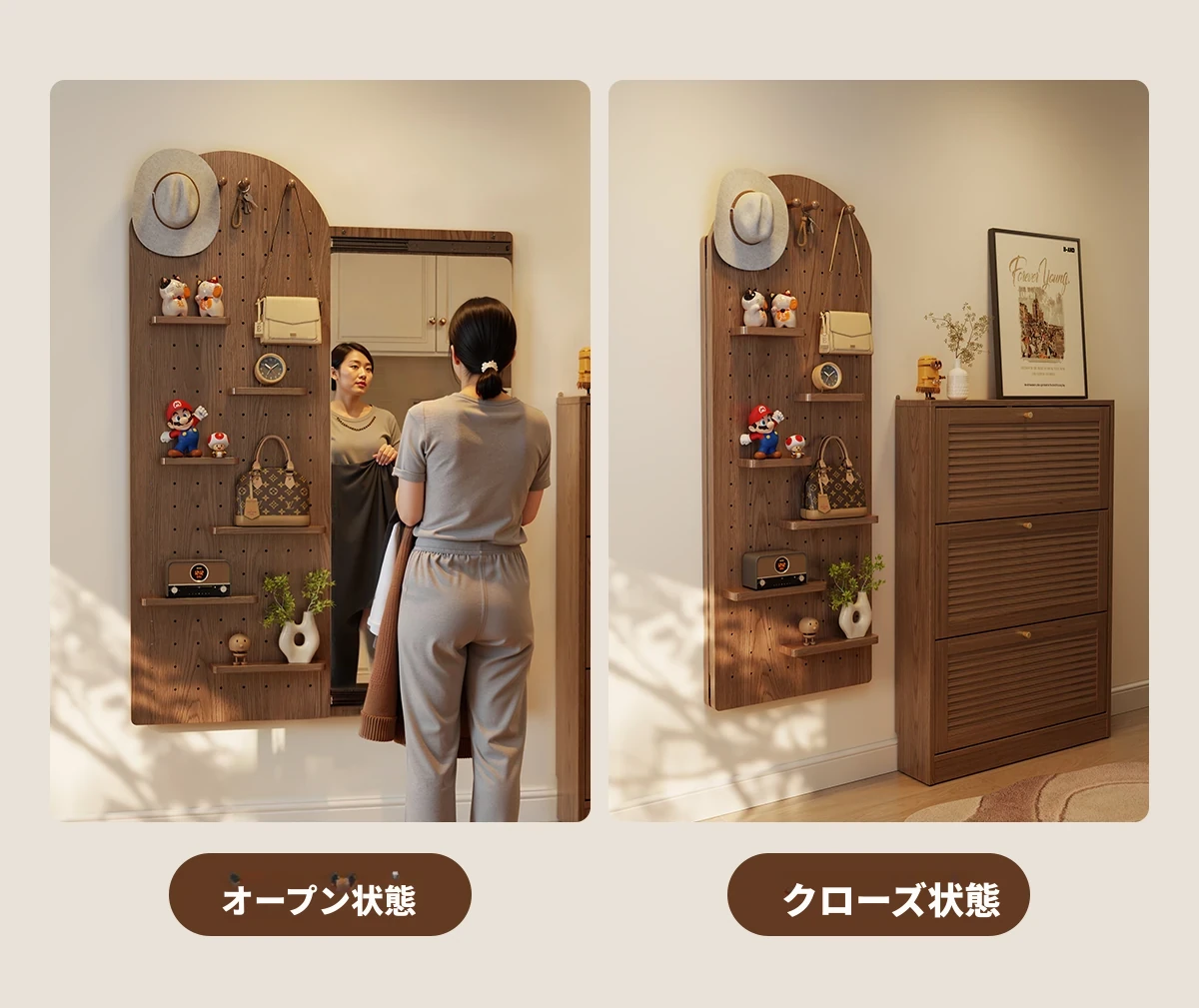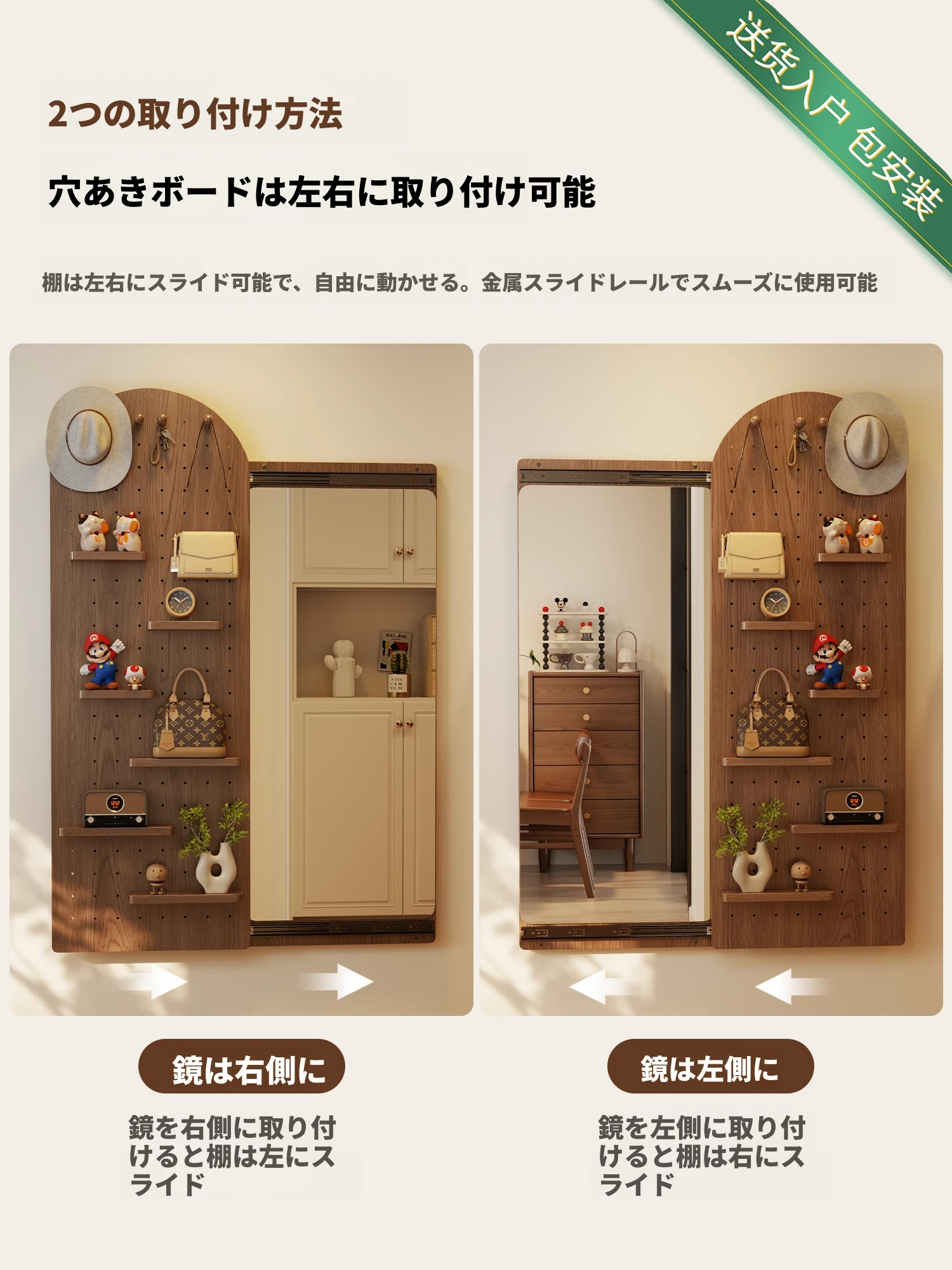 【取付け込み】天然木-高さ120*幅40cm ナチュラル色