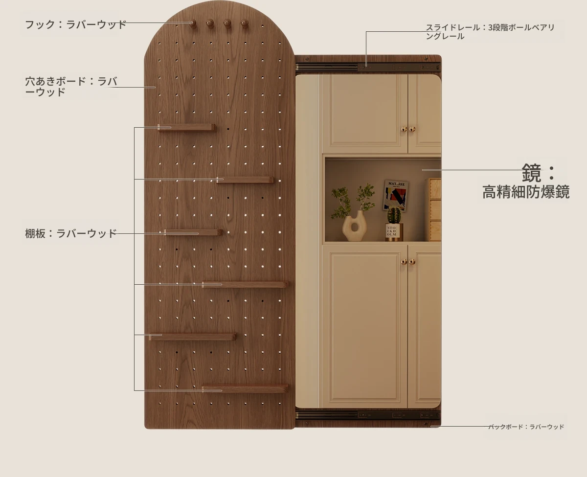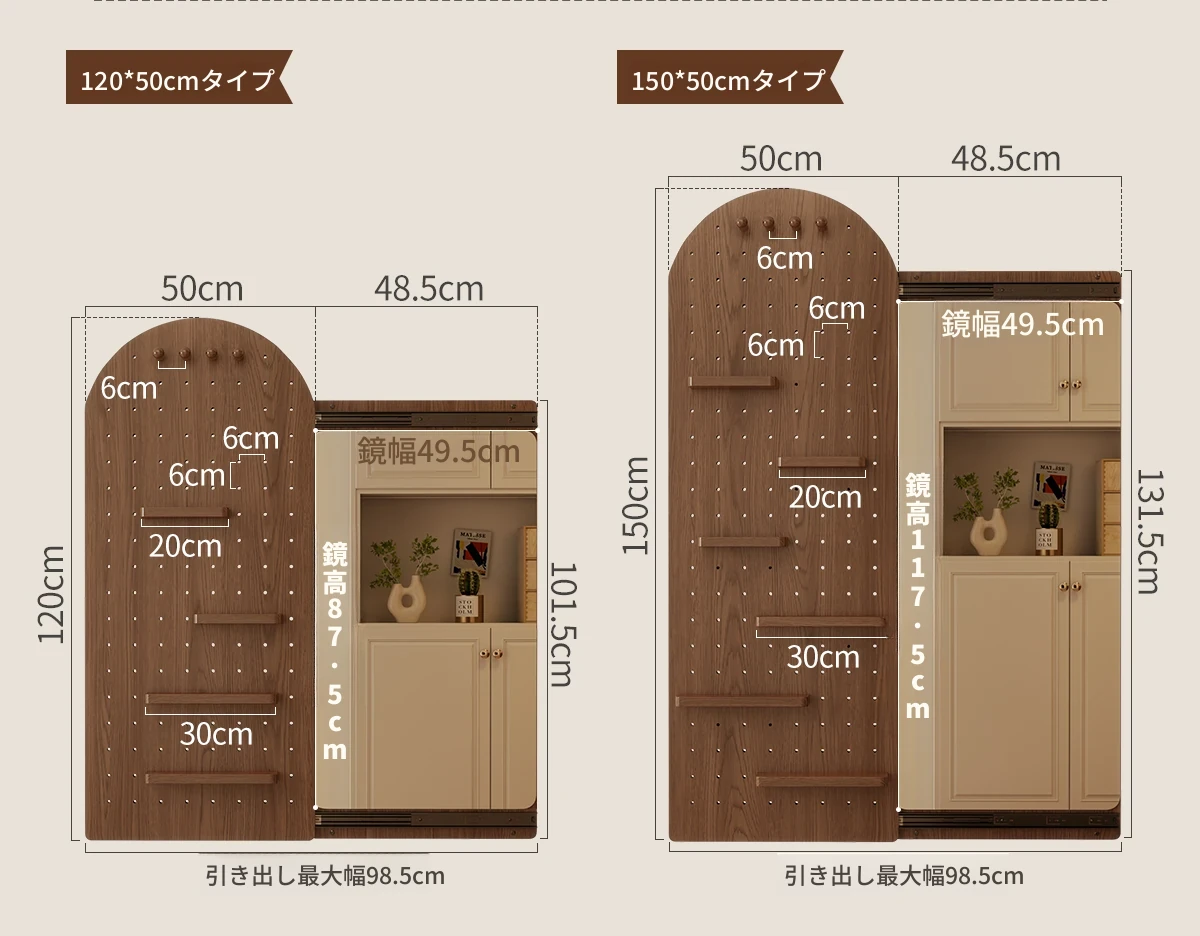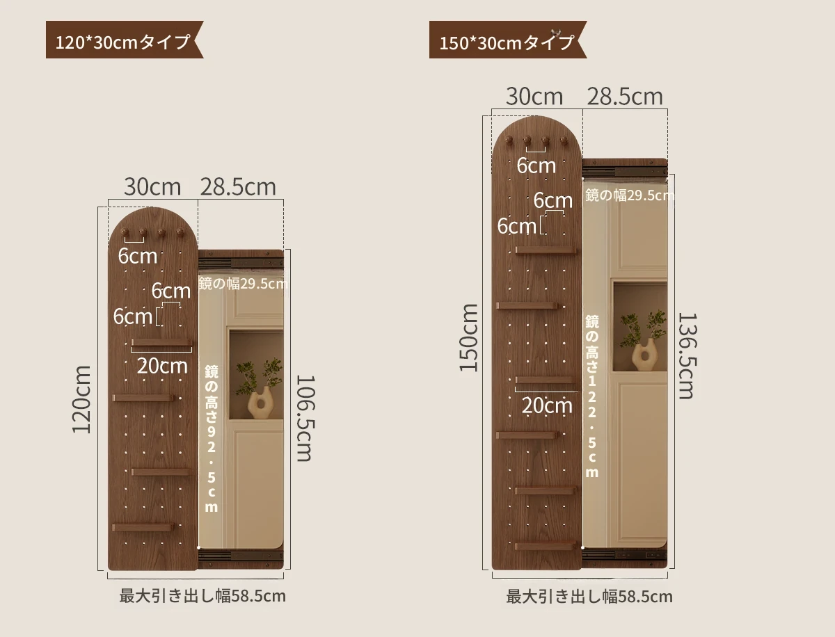【取付け込み】天然木-高さ150*幅50cm ナチュラル色