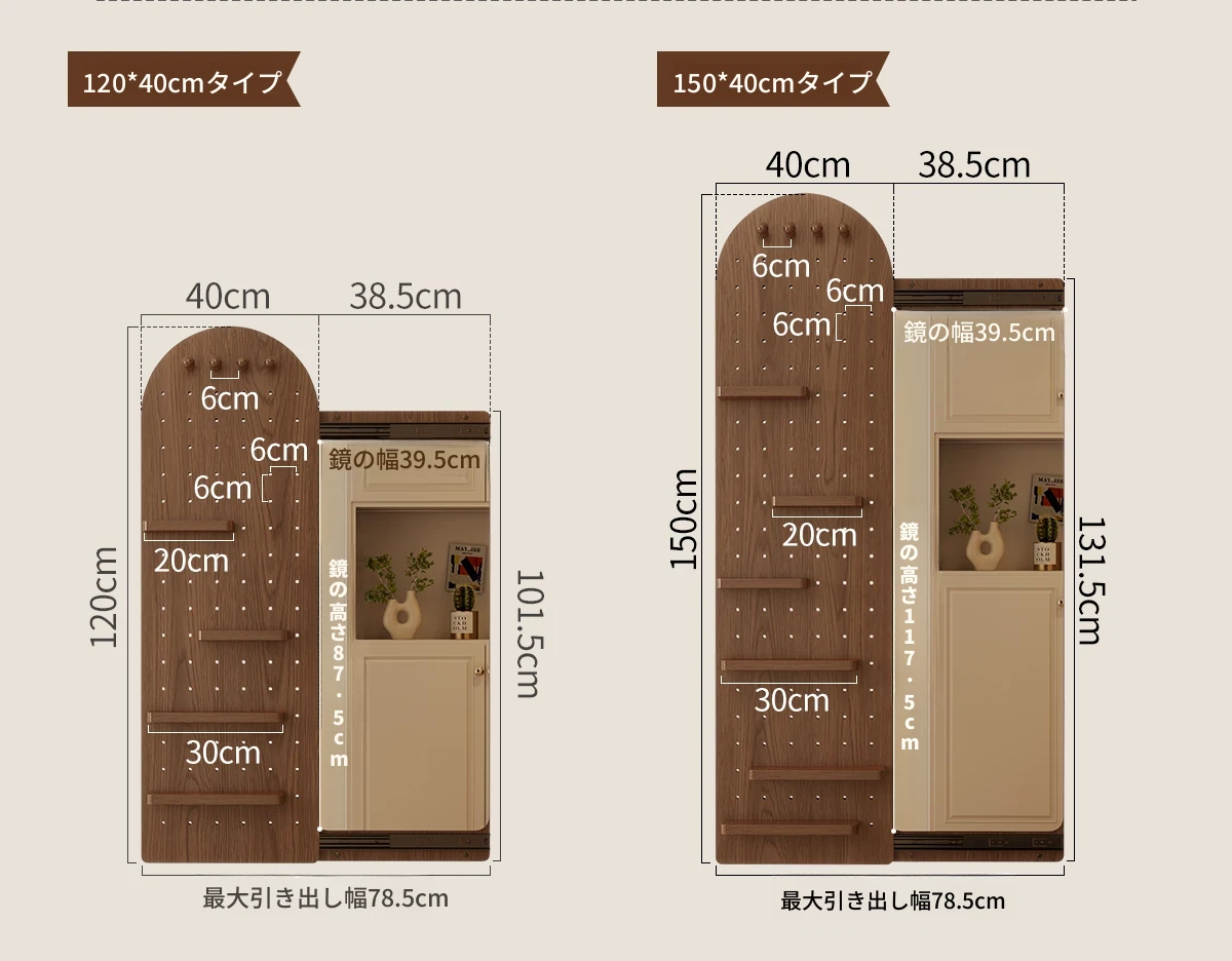 【取付け込み】天然木-高さ150*幅40cm ナチュラル色