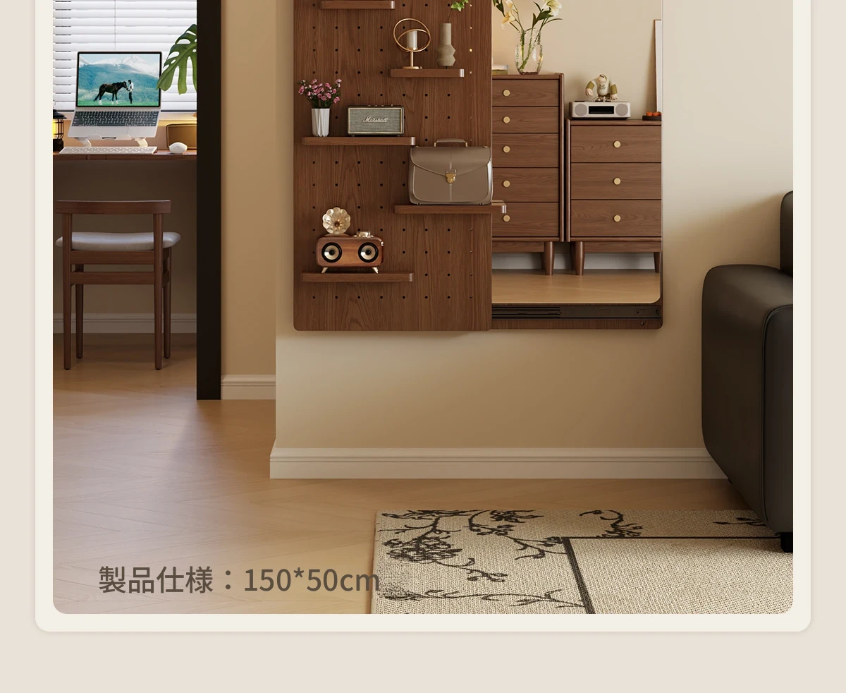【取付け込み】天然木-高さ150*幅50cm ウォールナット色