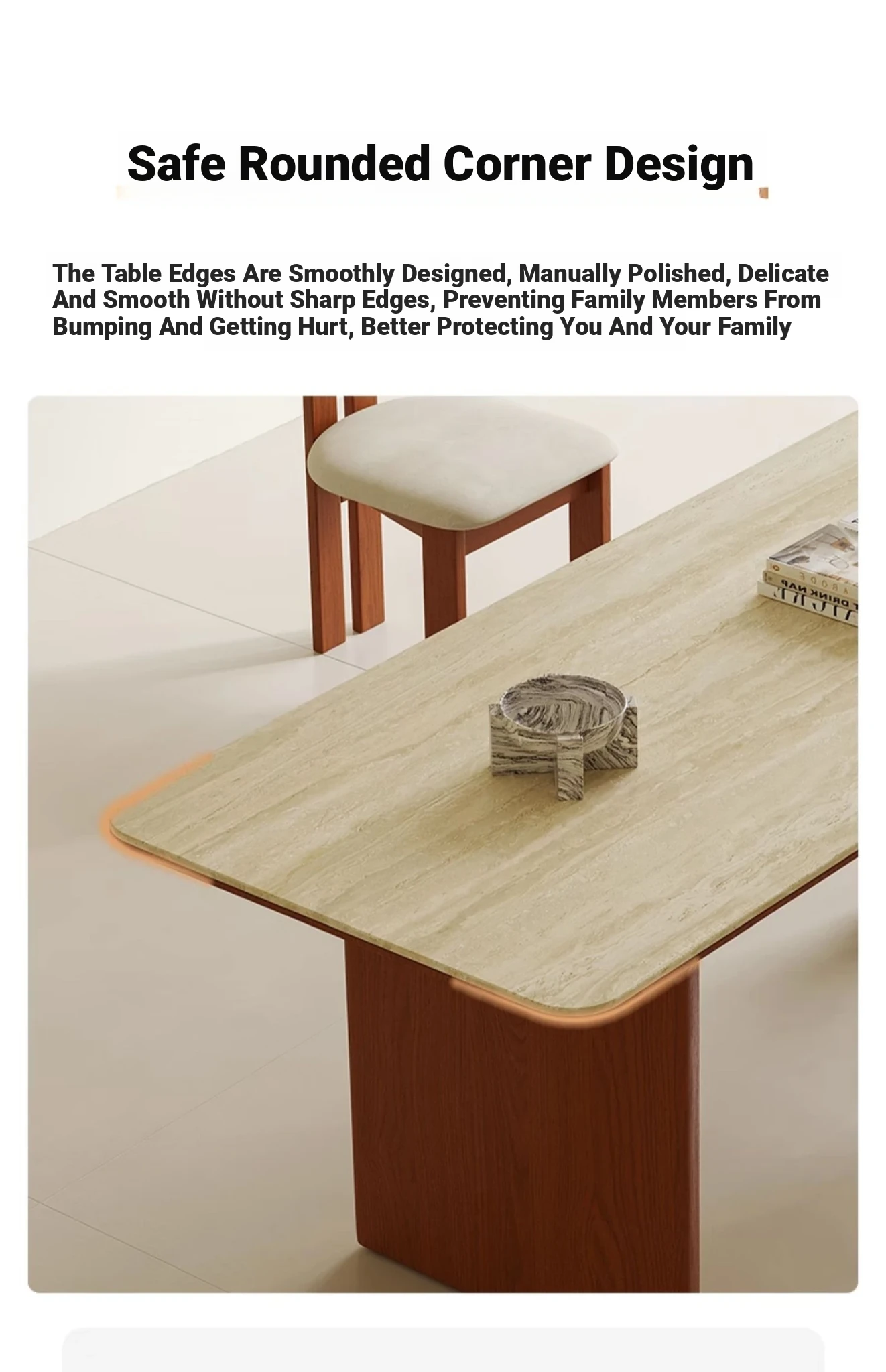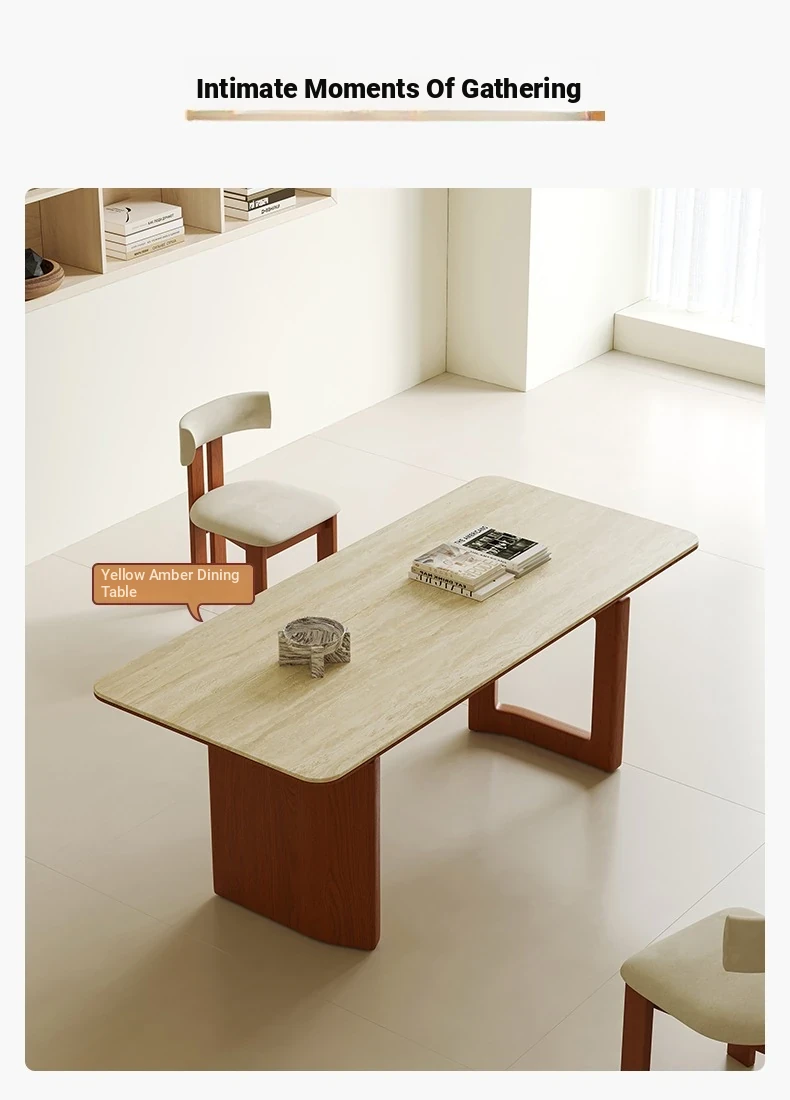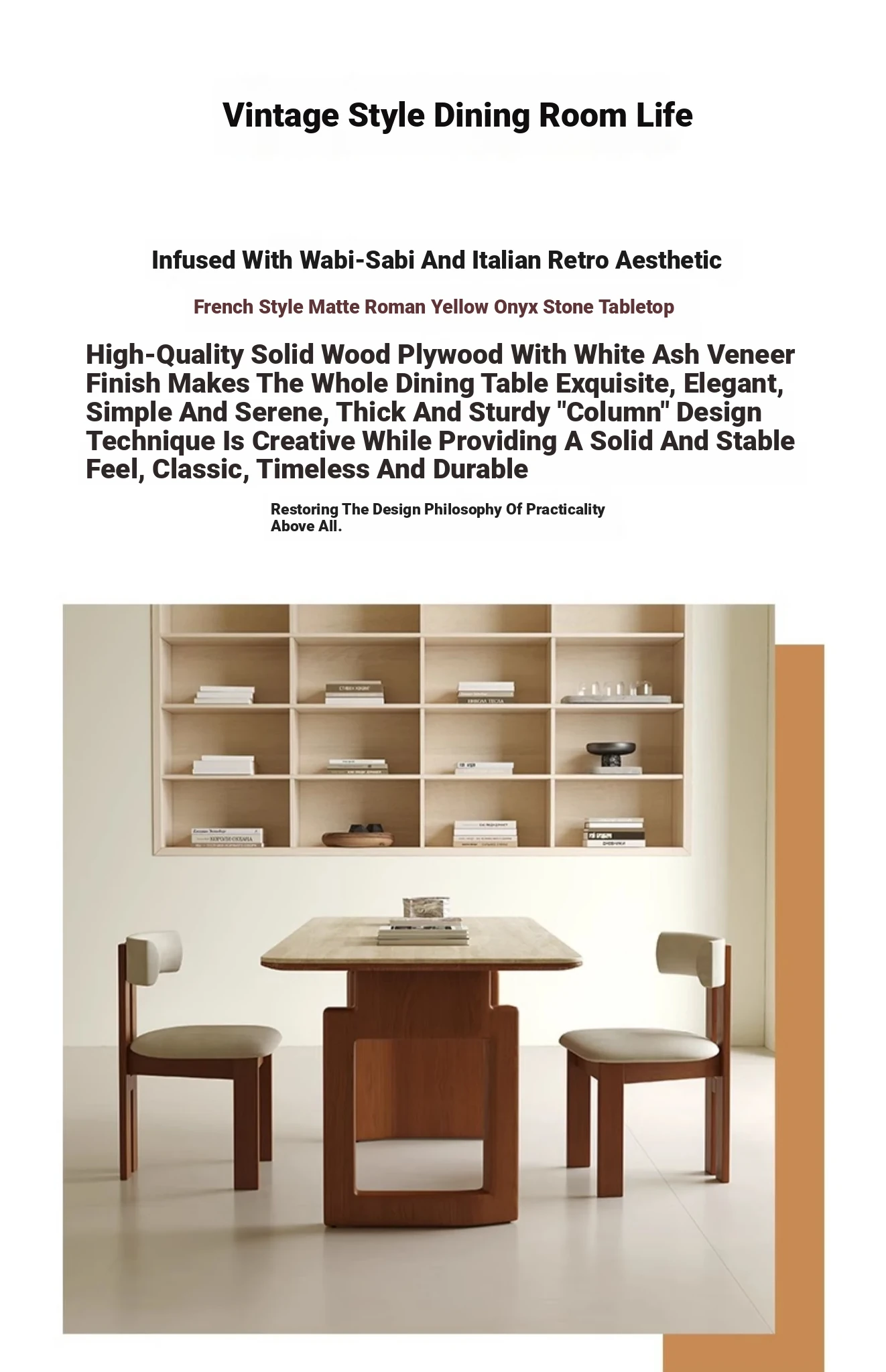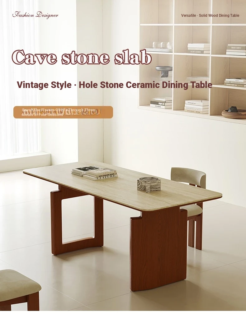 Xinfengli Fengdi Rectangular Stone Dining Table - 2025 New Model for Small Homes, Vintage Style with Durable Rock Surface, Perfect for Cozy Gatherings