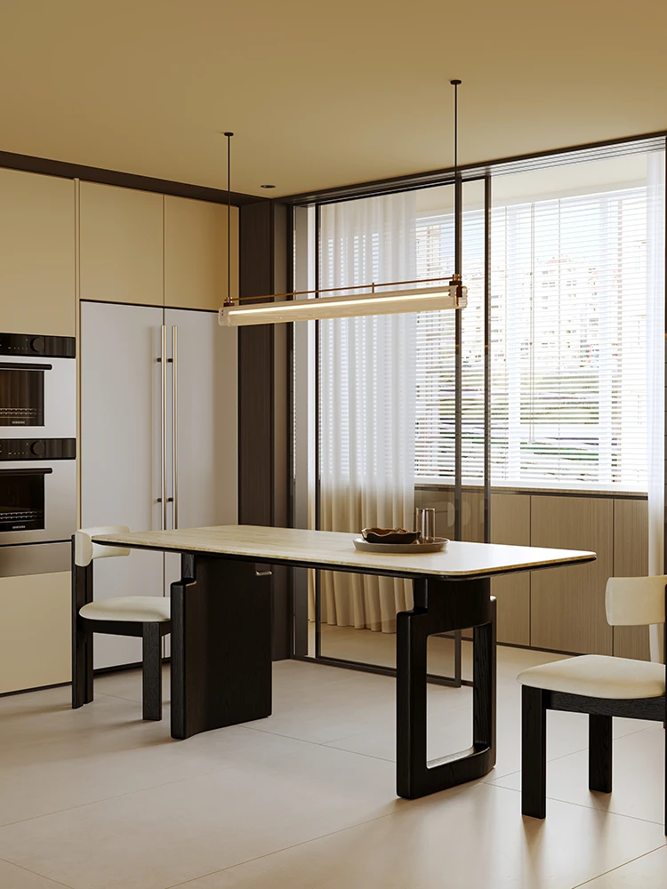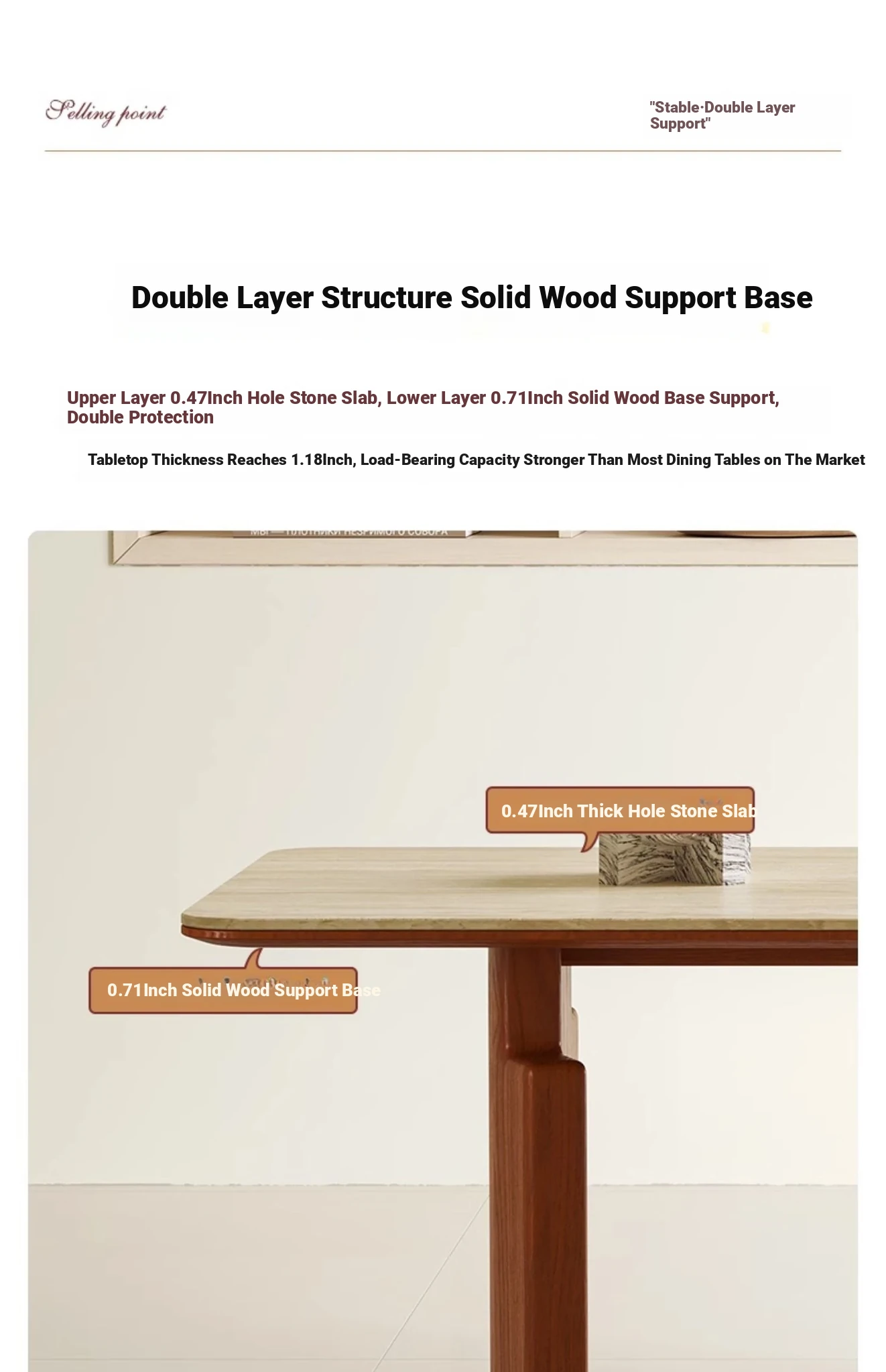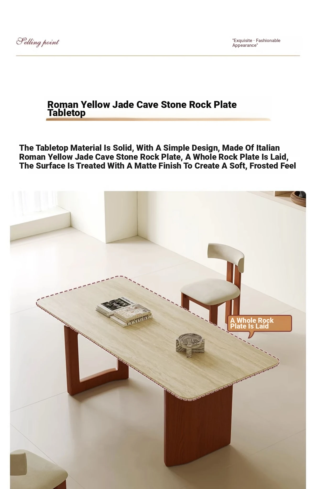 Xinfengli Fengdi Rectangular Stone Dining Table - 2025 New Model for Small Homes, Vintage Style with Durable Rock Surface, Perfect for Cozy Gatherings
